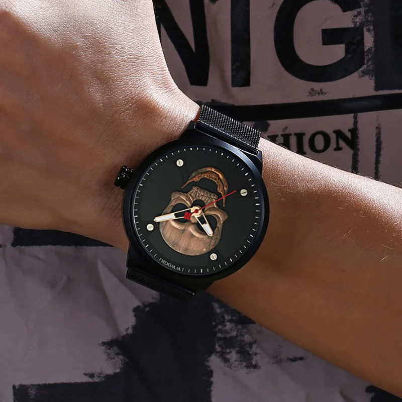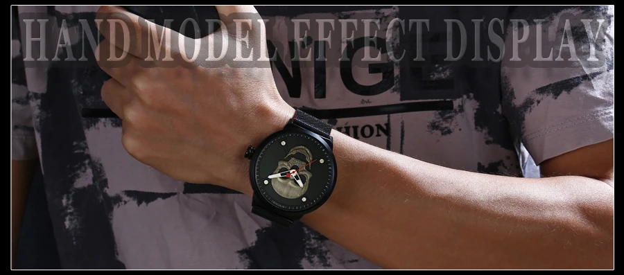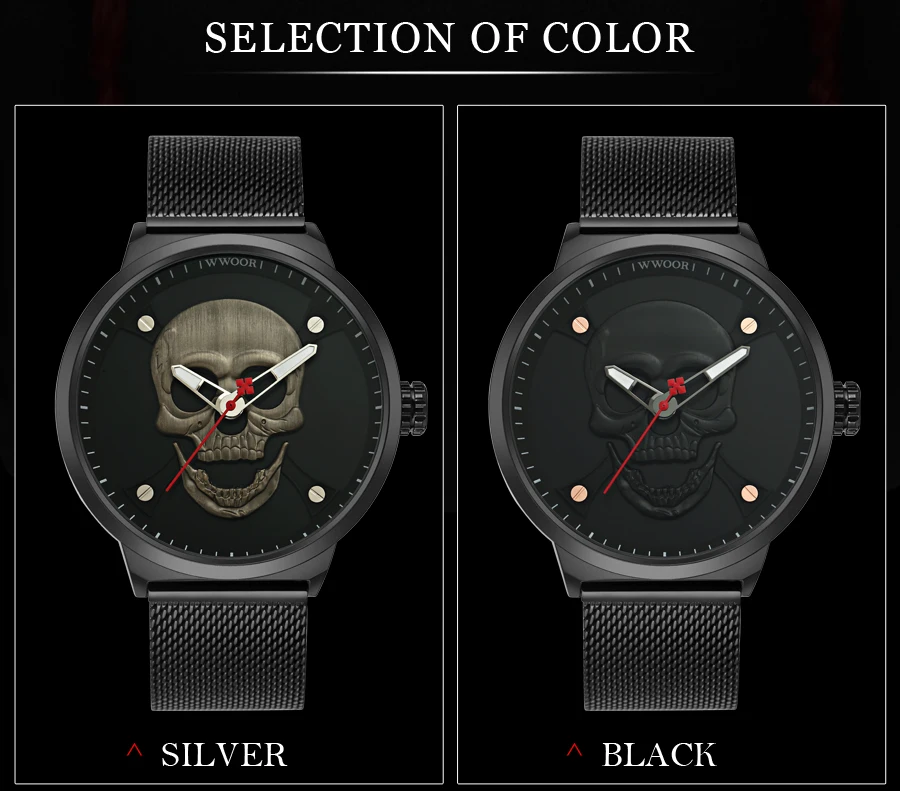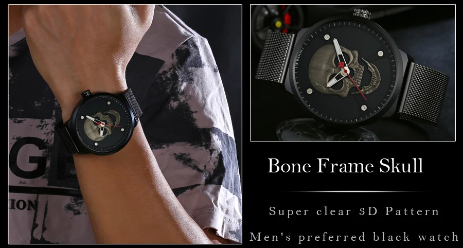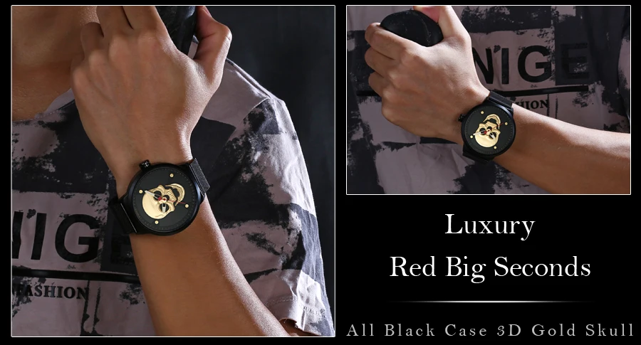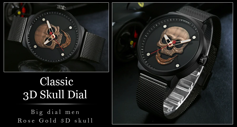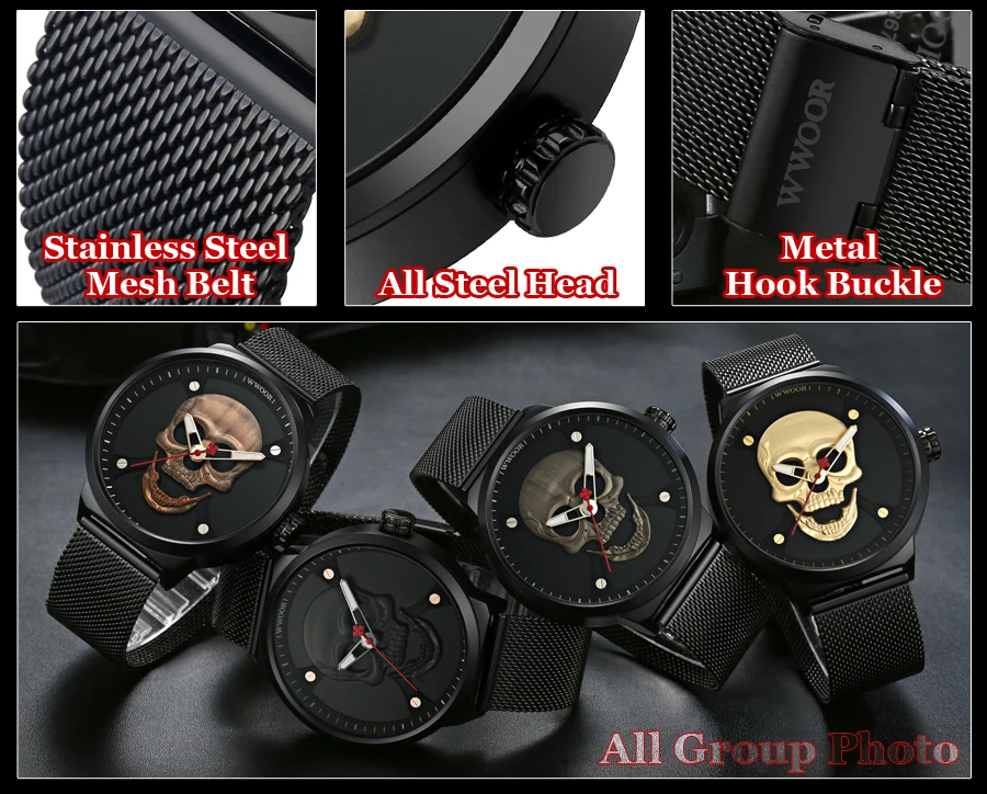 Часы WWOOR Мужские кварцевые со стальным сетчатым браслетом, креативные стильные брендовые Роскошные с рисунком черепа