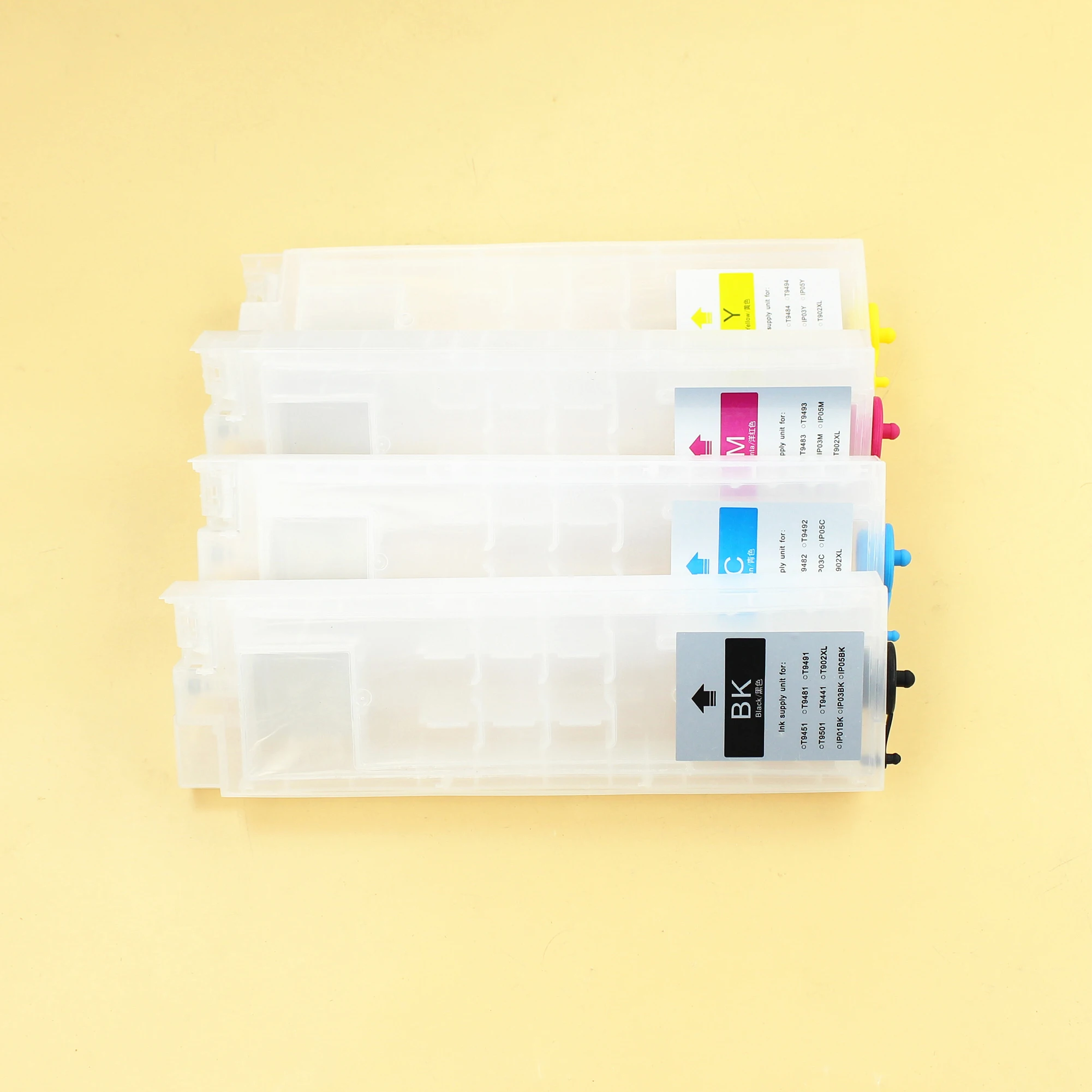Выберите4 тележки без чипа, Вы получите 4 шт. пустые картриджи для чернил без сколовВыберите4 тележки ARC chips, Вы получите 4 шт пустые картриджи для чернил с чипами ARC только для Европейского принтера.