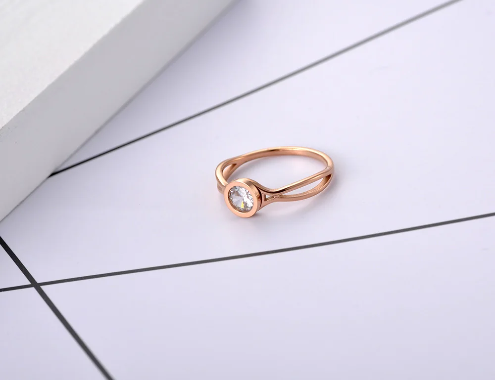 Кольцо женское из нержавеющей стали, с фианитами, розовое золото, для коктейвечерние, R20029