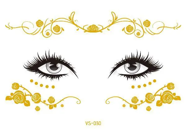 Золотая татуировка для лица, временная татуировка, водостойкие, мод...