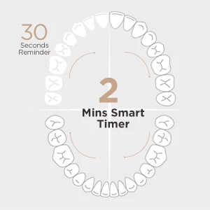 Функция Auto-timed помогает обеспечить стоматолога-рекомендуем чистить habbit. Есть интервальные Пасхи, напоминающие вам менять область чистки каждые 30 секунд, и он автоматически отключается, когда круг 2 минуты закончен.