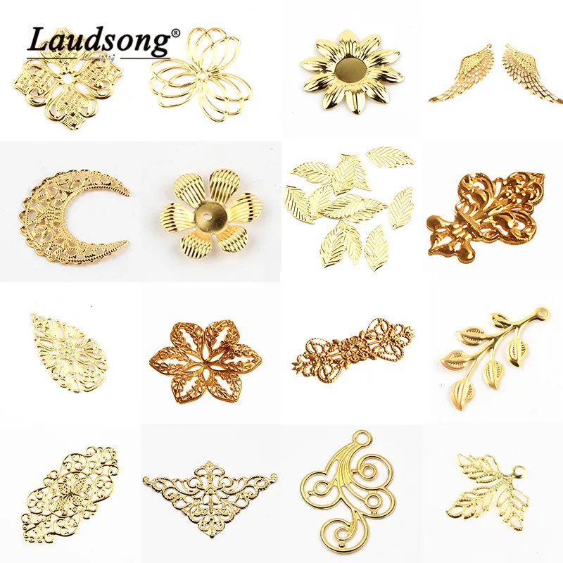 Филигранные металлические соединители с вырезами в виде цветка золотого цвета, железная поделка ручной работы, подарочные аксессуары, украшения для рукоделия, изготовление ювелирных изделий