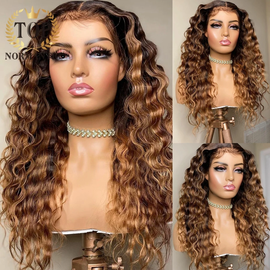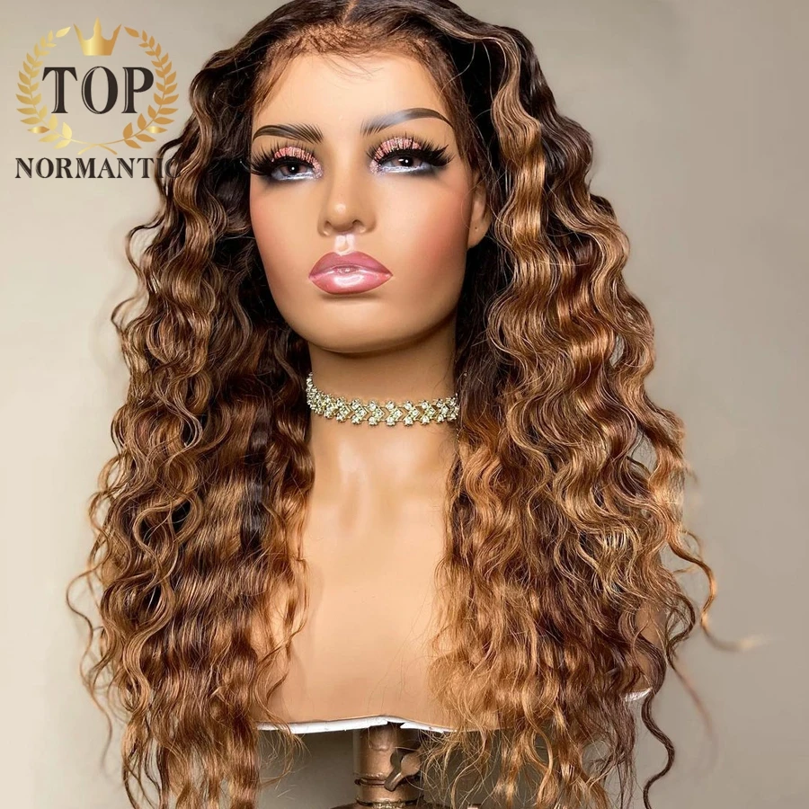 Topnormantic хайлайтер цвет глубокая волна парики для женщин 13x 6 кружевной передний Remy бразильские человеческие волосы парик предварительно выщипанная линия волос