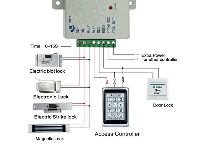 На основе передовой технологии, быстрой скорости распознавания, высокой чувствительности. Подходит для большинства основных решений контроля доступа. Схема проводки Эта клавиатура управления доступом не требует подключения к компьютеру. Вы просто подключите его к источнику питания DC12V, электрическому замку, кнопке выхода.