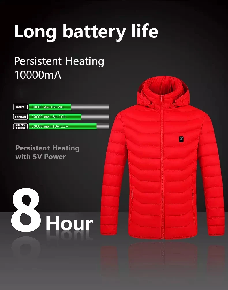Как использовать:1. Выньте USB-разъем.2. Подключите съемное зарядное устройство.3. Включите съемное зарядное устройство.4. Нажмите на переключатель контроля температуры груди в течение двух секунд.5. Красный светильник мигает, означает Автоматический нагрев.6. После того, как красный светильник мигает в течение 5 минут, автоматическое включение в белый светильник означает среднюю температуру.7. Ручная регулировка имеет три уровня, светильник означает непрерывный нагрев при высокой температуре.Светильник означает непрерывный Средний нагрев, синий светильник означает непрерывный низкий нагрев.8. Нажмите на переключатель контроля температуры груди в течение двух секунд, выключите свет и прекратите нагрев.Дорогой другНаша Таблица размеров основана на Азиатском размере, азиатском размере L = европейском размере M = американском размере SПожалуйста, выберите размер на основе веса и роста, основываясь на нашей таблице размеров, это верно.Мужские и женские куртки с подогревом, уличный жилет, пальто с USB-аккумулятором, с длинным рукавом, теплые куртки с капюшоном, теплая зимняя Термоодежда для катания на лыжах (внешний аккумулятор не входит в комплект)Пожалуйста, обратите внимание, что внешний аккумулятор не входит в комплект.Вы должны взять с собой. Пожалуйста, используйте блок питания 5 В, 2 А. Менее 20000 мАч, интерфейс USB.