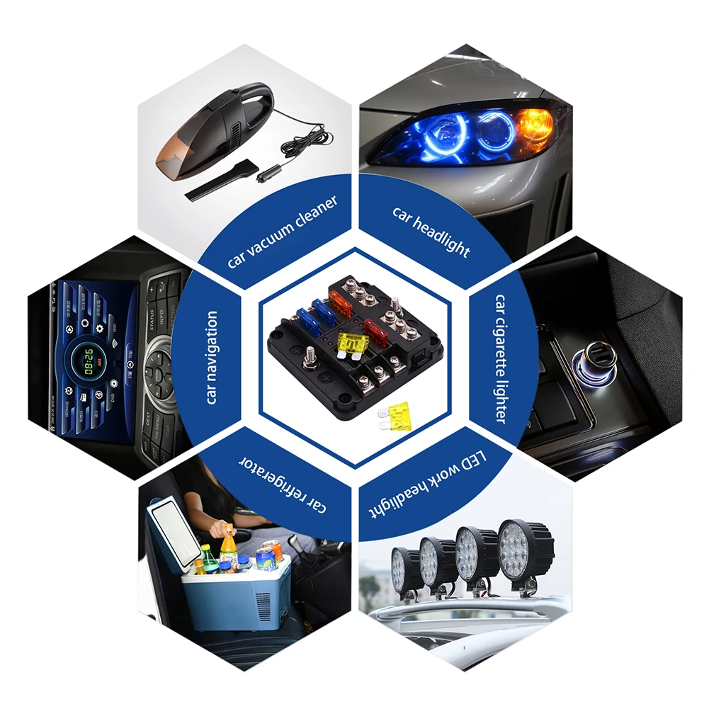 6-полосный держатель предохранителей, блок, сумка 12 В24 В, автомобиль, грузовик, лодка, морской автобус, фургон на колесах