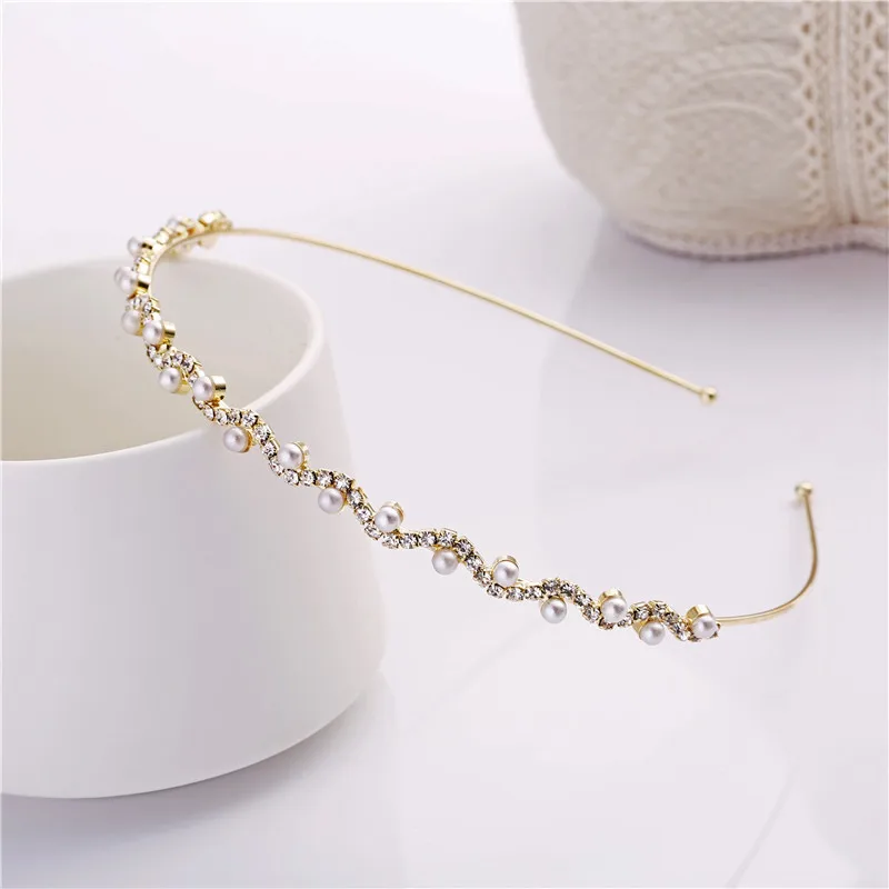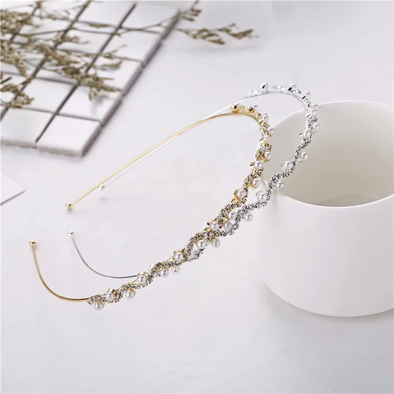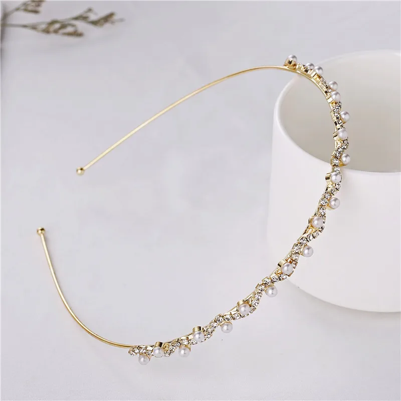 Повязка для волос со стразами ЖенскаяДетская, с инкрустацией жемчугом, золотистогосеребристого цвета, 1 шт.