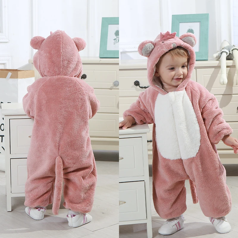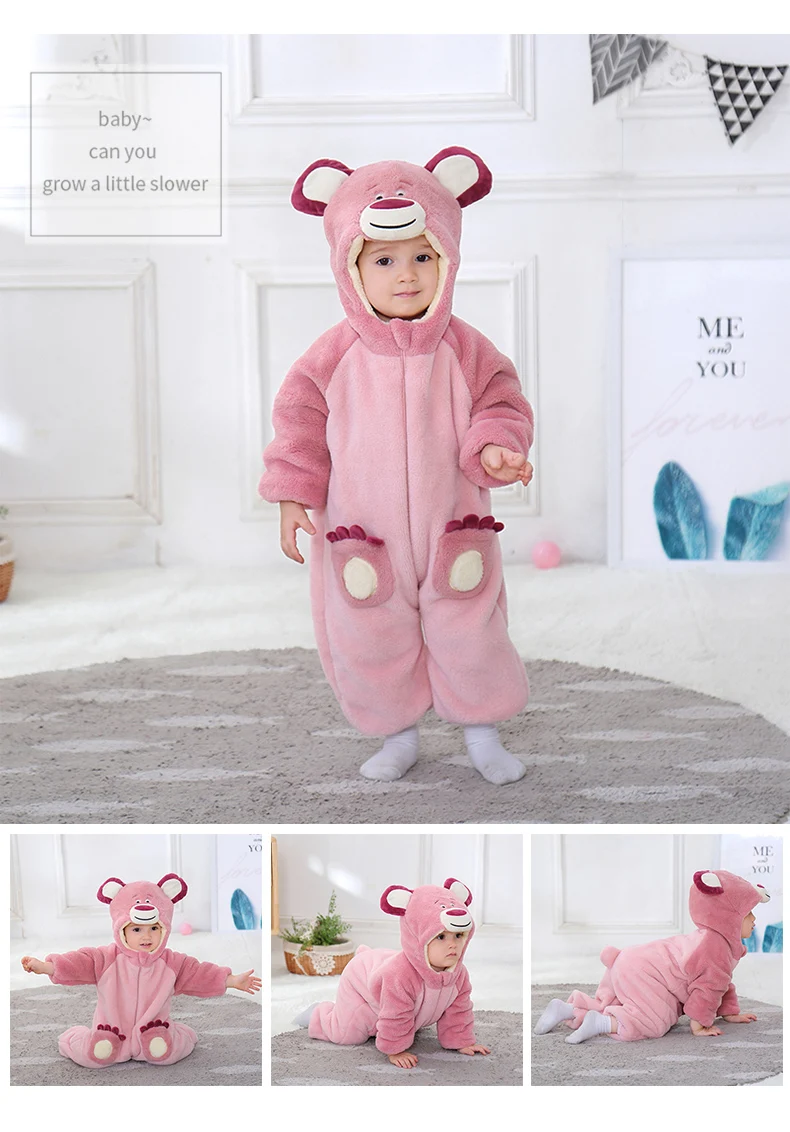 Детский Теплый комбинезон Kigurumis, зимний комбинезон с мультяшным медведем для мальчиков и девочек 0-3 лет