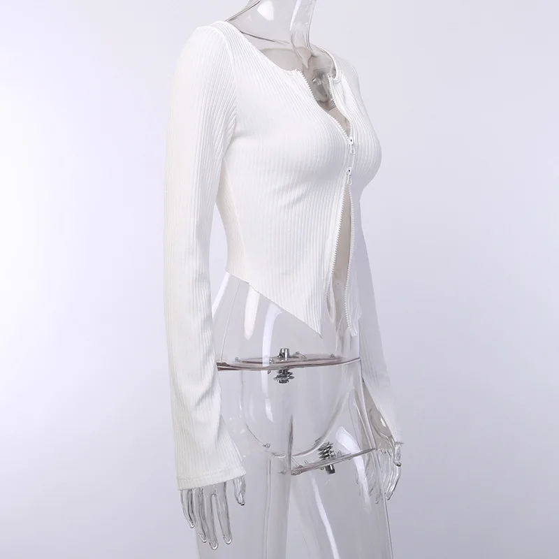 Женский Осенний укороченный свитер на двойной молнии, Облегающее вя...