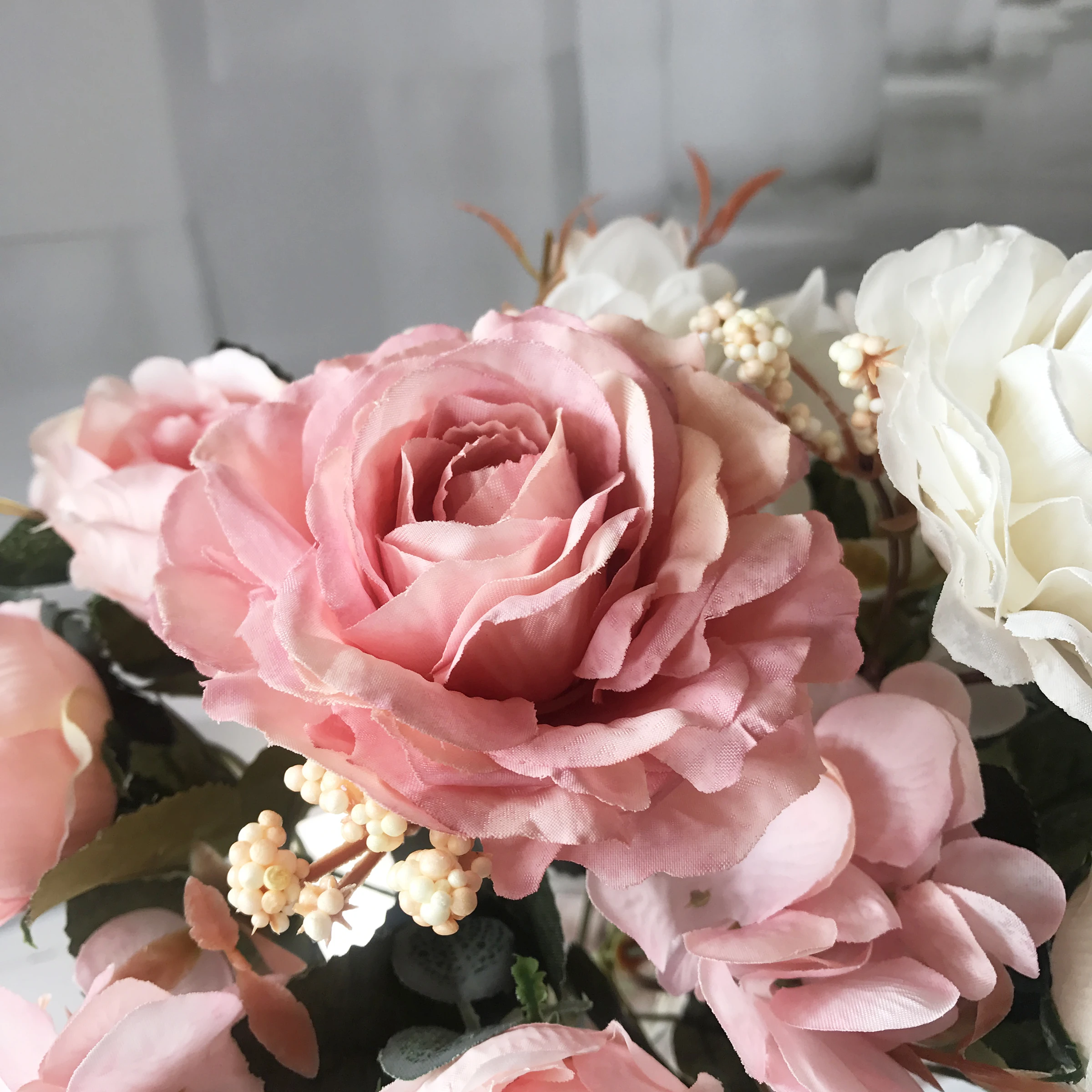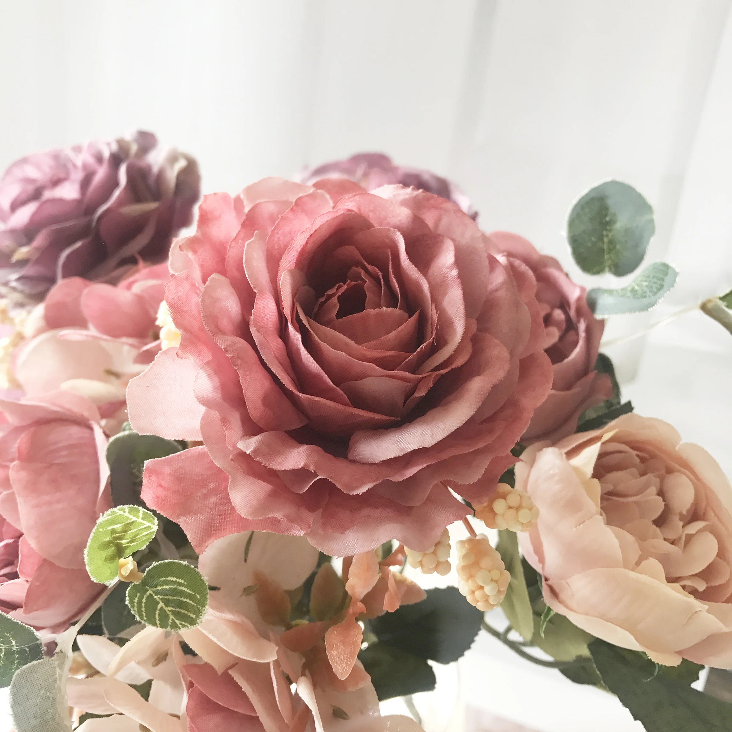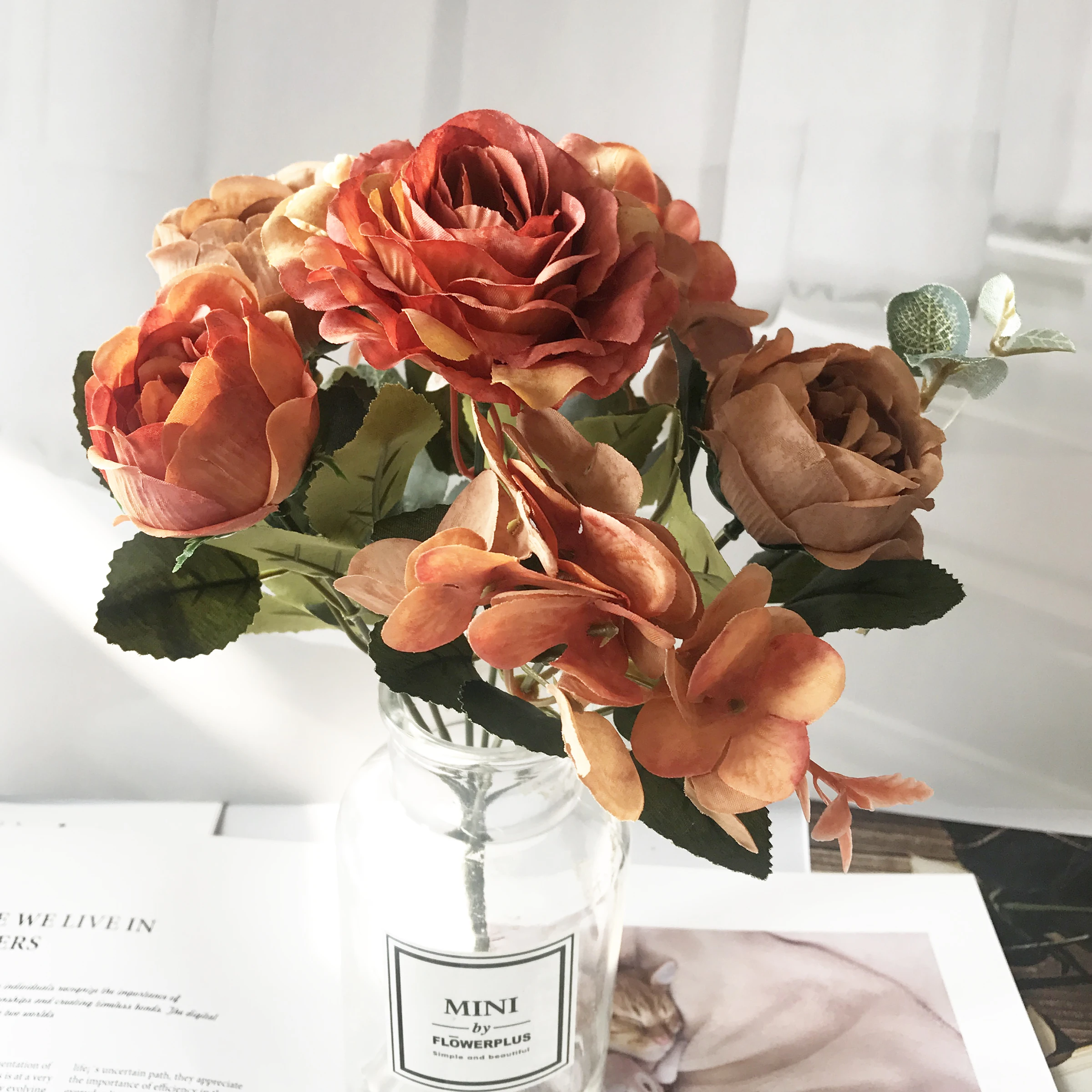 Искусственные цветы ретро букет роз из шелка Гортензия пион Винтаж Невеста держит поддельный цветок Домашний Свадебные украшения, аксессуары