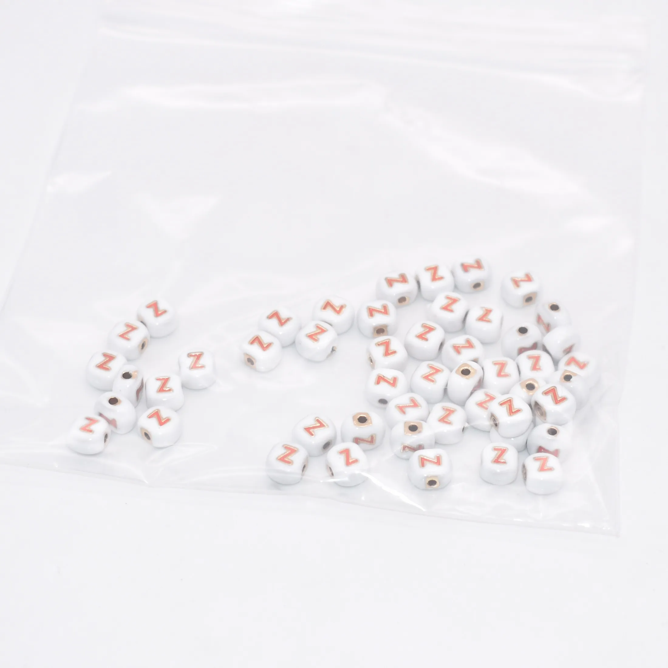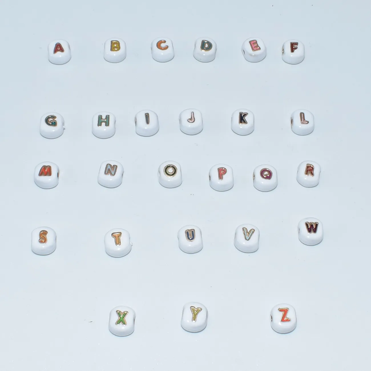 Белые эмалированные бусины, красочные буквыРазмер около 7*9 ммDIY браслет