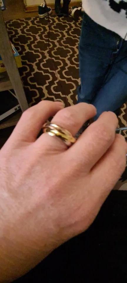 Это кольцо было отличной покупкой. Цвет выглядит хорошо, и он еще не потускнел. Я не думаю, что это будет из-за нержавеющей стали. До сих пор я осыпалась с ним и зашлась на пляж и все такое же хорошее, как и в первый день! Определенно рекомендую! Спасибо!