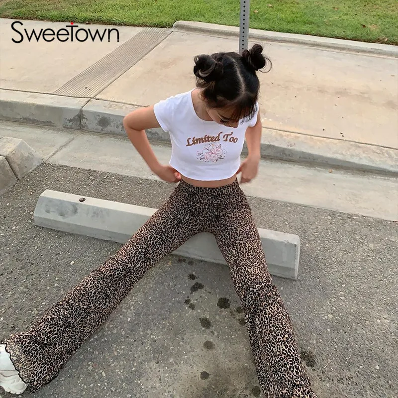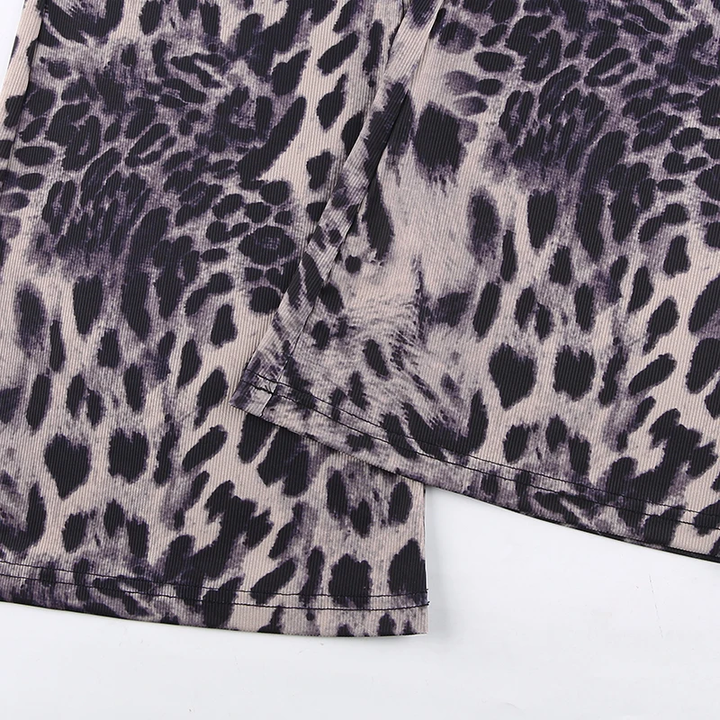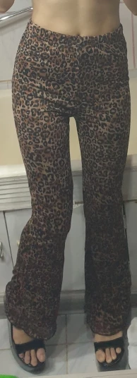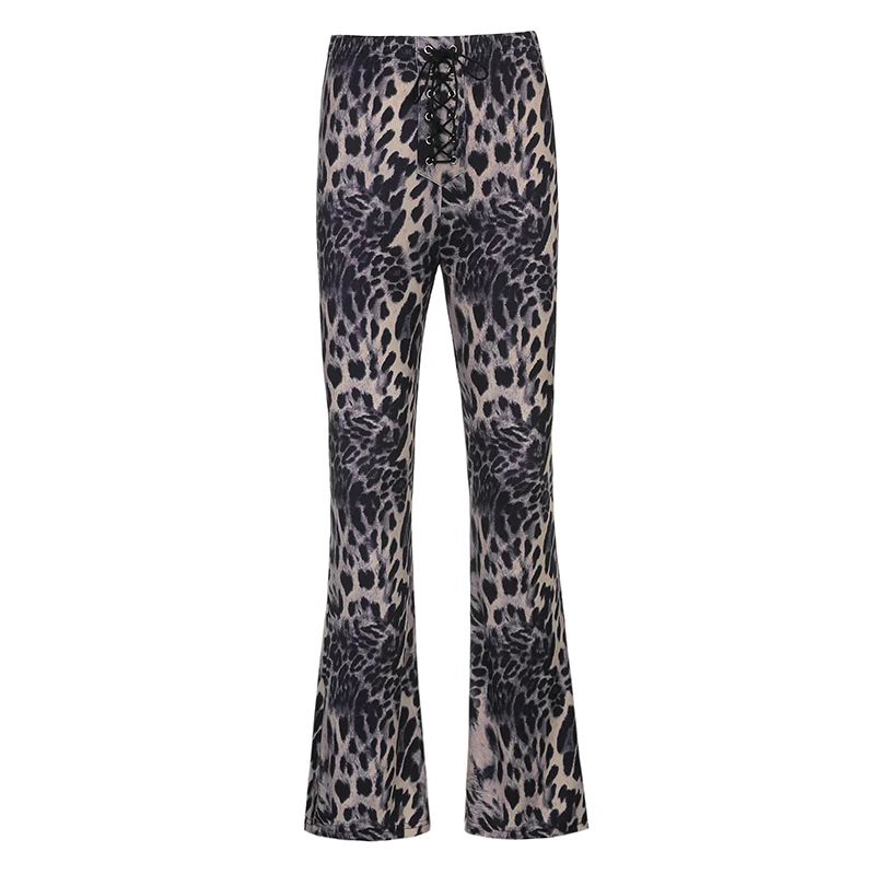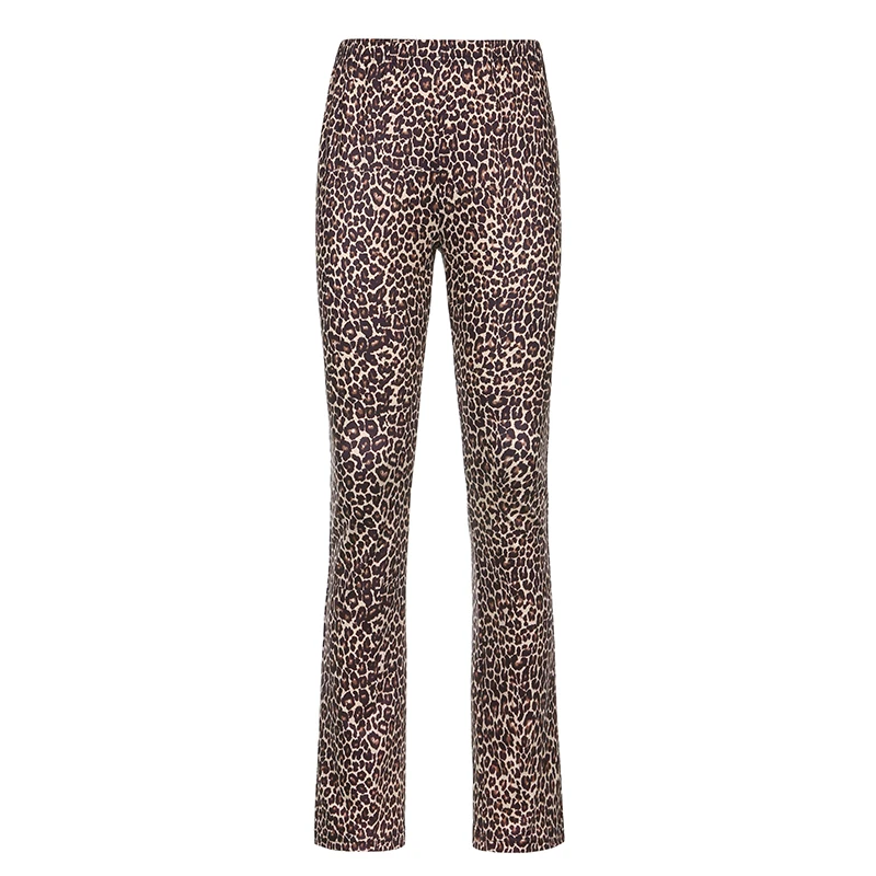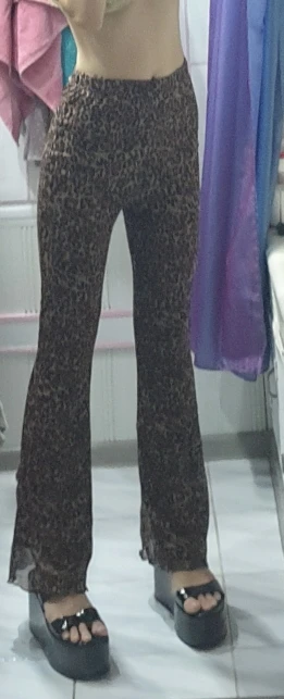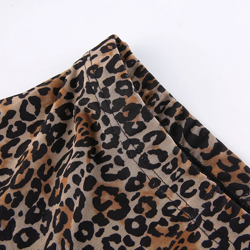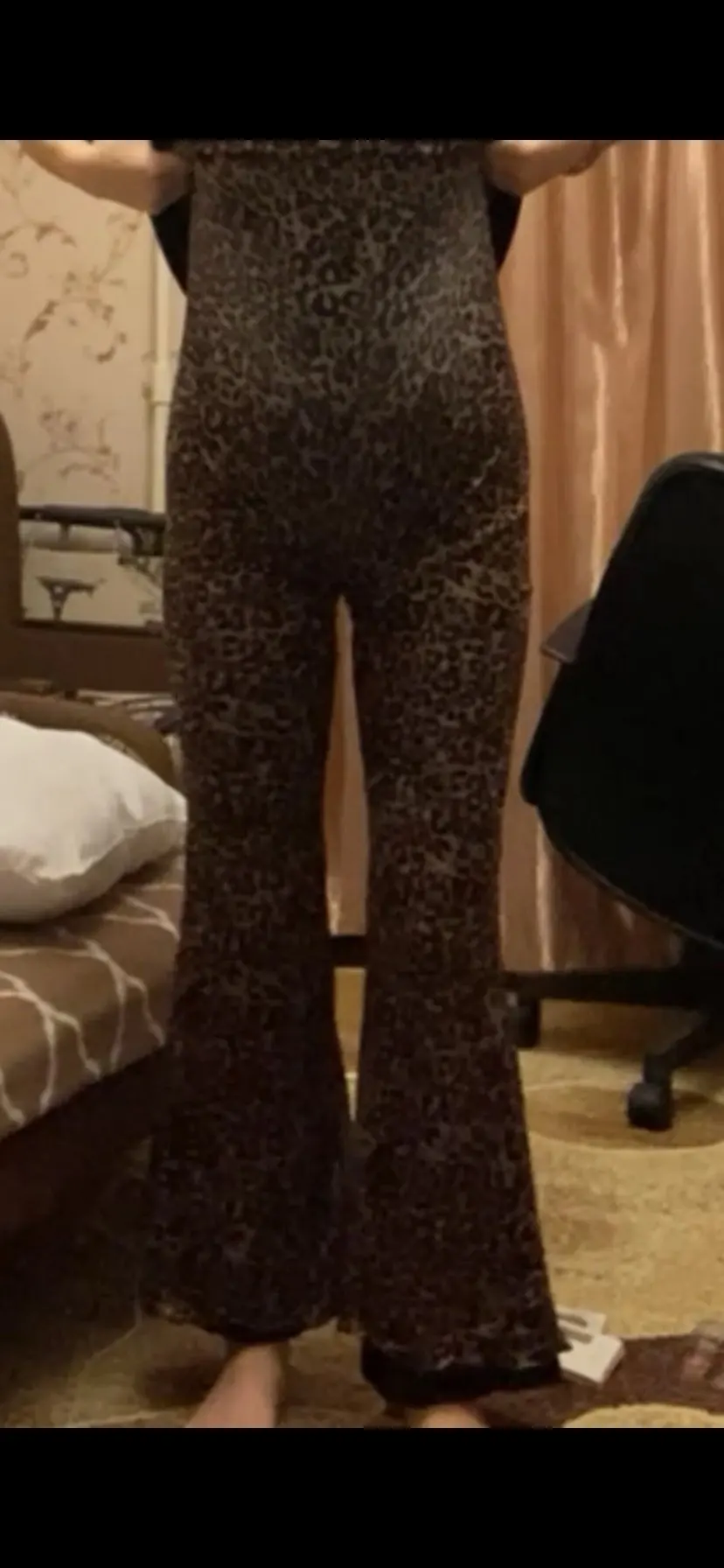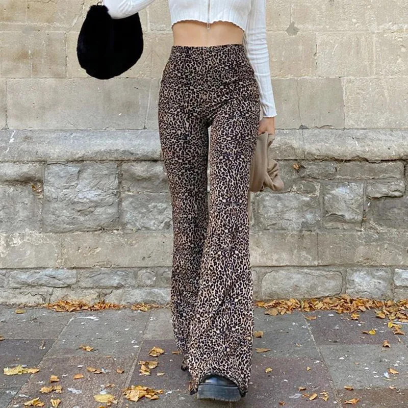 Брюки-клеш Женские, коричневые, леопардовые, с высокой талией, из сетчатого материала, тренировочные, 2021