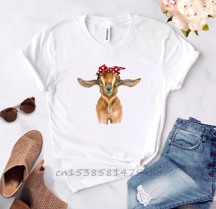 Женская футболка с принтом козы и бандана, невыцветающая Повседневная забавная футболка премиум-класса, подарок 90-х летней девушки