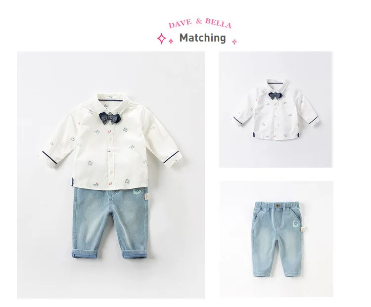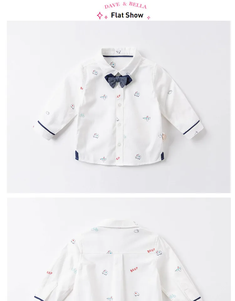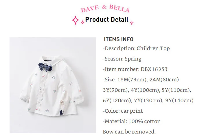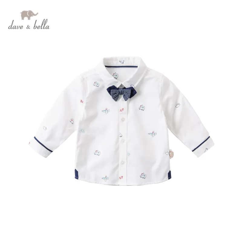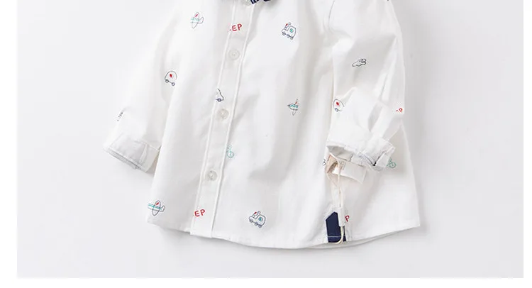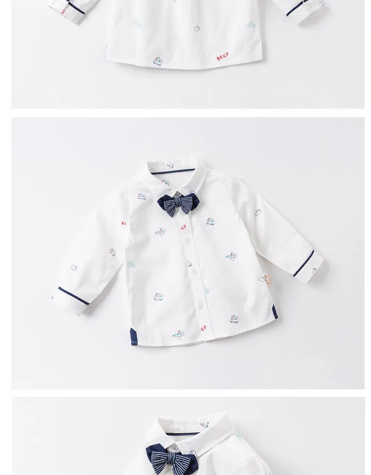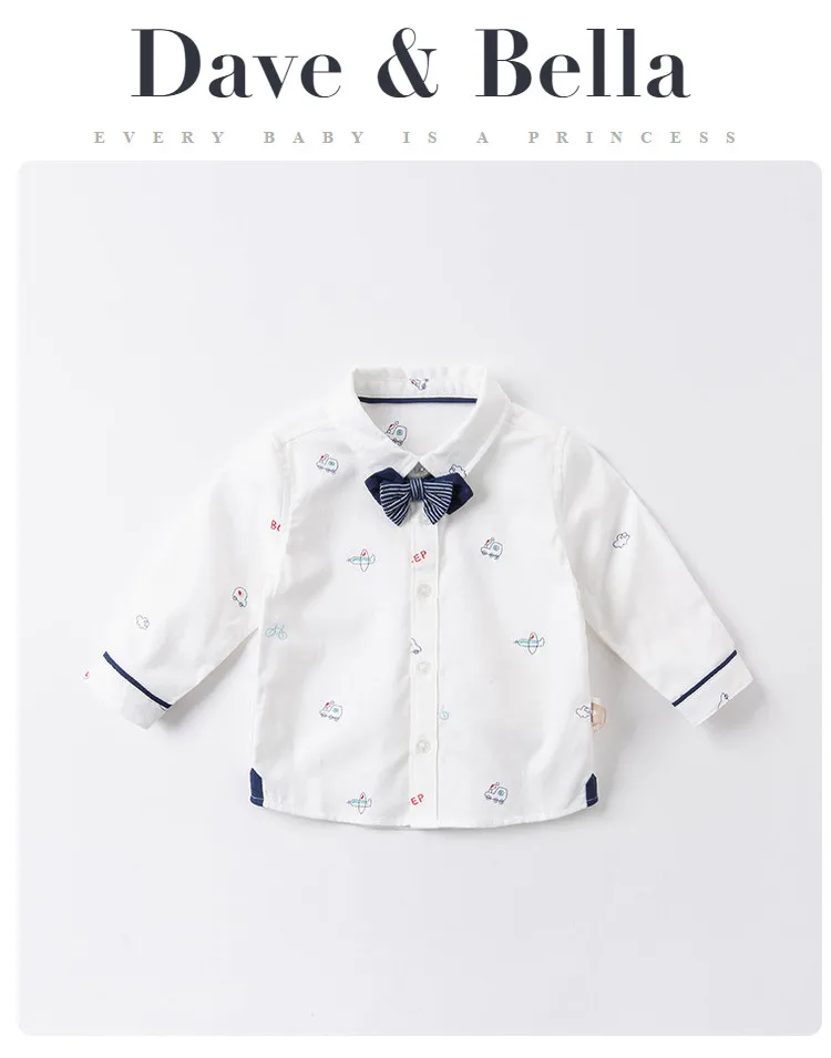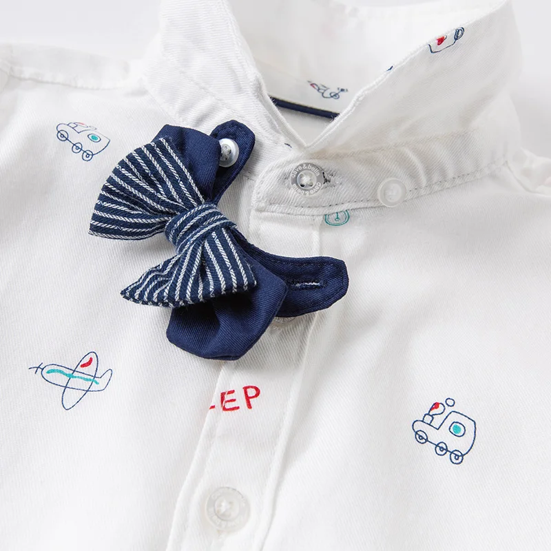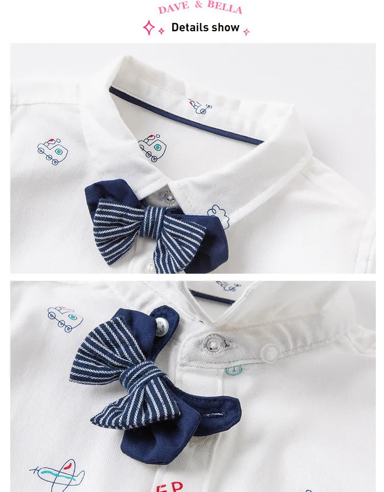 DBX16353, демисезонная Модная рубашка с съемным бантом для маленьких мальчиков, рубашки для младенцев, топы для малышей, детская одежда высокого качества