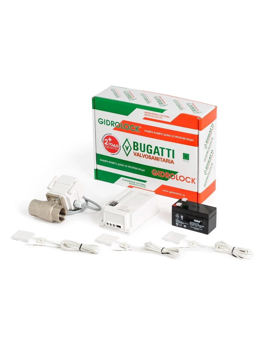 Компл. защиты от протечки воды GIDROLOCK ULTIMATE BUGATTI (1 кран 34", Бупр, Акк., 3 д. протечки)