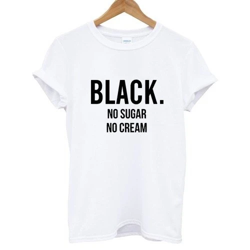 Черная Женская футболка с надписью NO SUGAR NO CREAM, премиум-класса, женская футболка, топ с графическим принтом, футболка на заказ