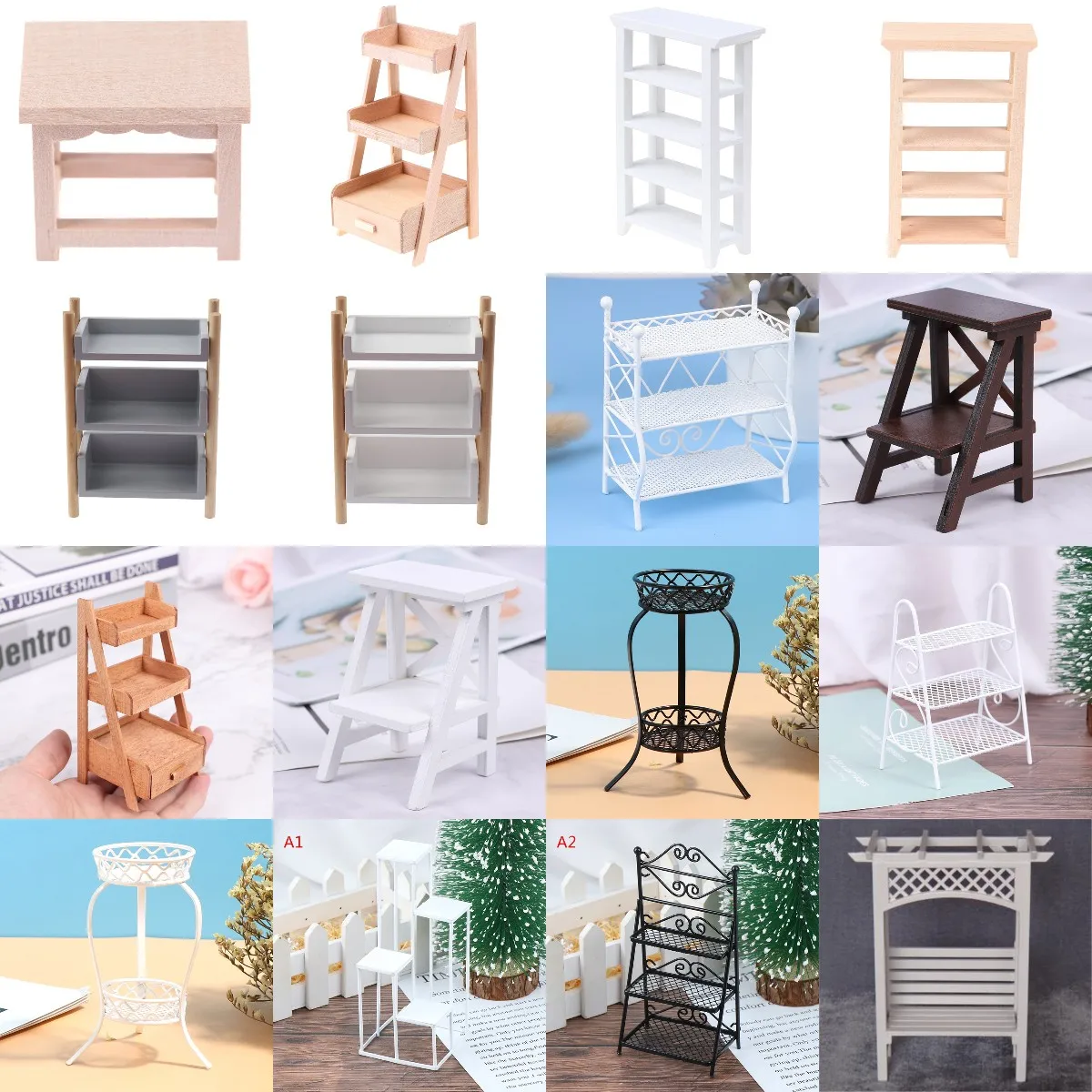 Деревянная пластиковая металлическая полка для кукольного домика 1:12, подставка для цветов, модель мебели