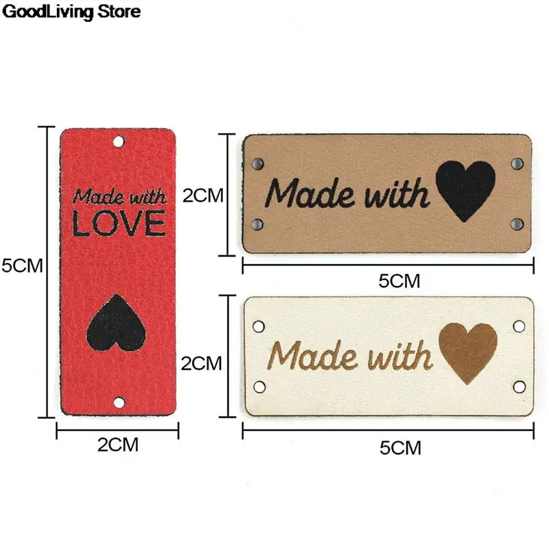 20 шт. искусственная кожа теги ручной работы с любовью этикетки Швейные Ремесло ручной работы бирки для одежды сумки обувь бирки для вязания этикетки 5x2CM
