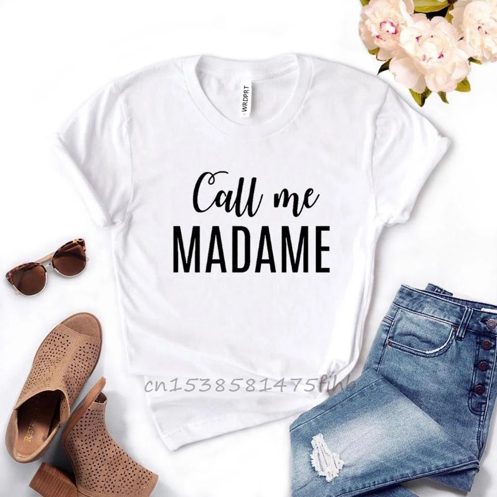 Женские футболки с надписью Call Me мадам, невыцветающие повседневные Забавные футболки премиум-класса для женщин, женские футболки, топы с графическим рисунком, футболки на заказ