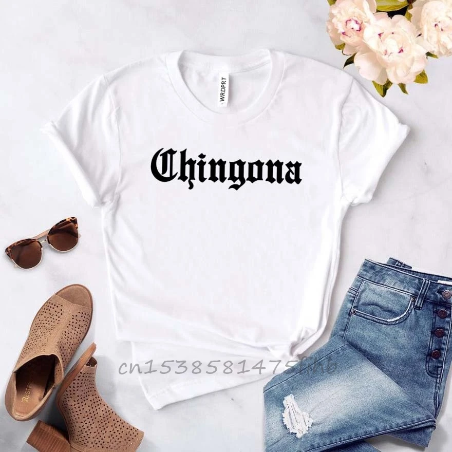 Chingona буквы Мексика латина, женская футболка, хлопок, свободный ...