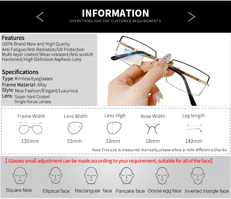Изготовленный На Заказ титановый рецепт очки без оправы градусов ас...