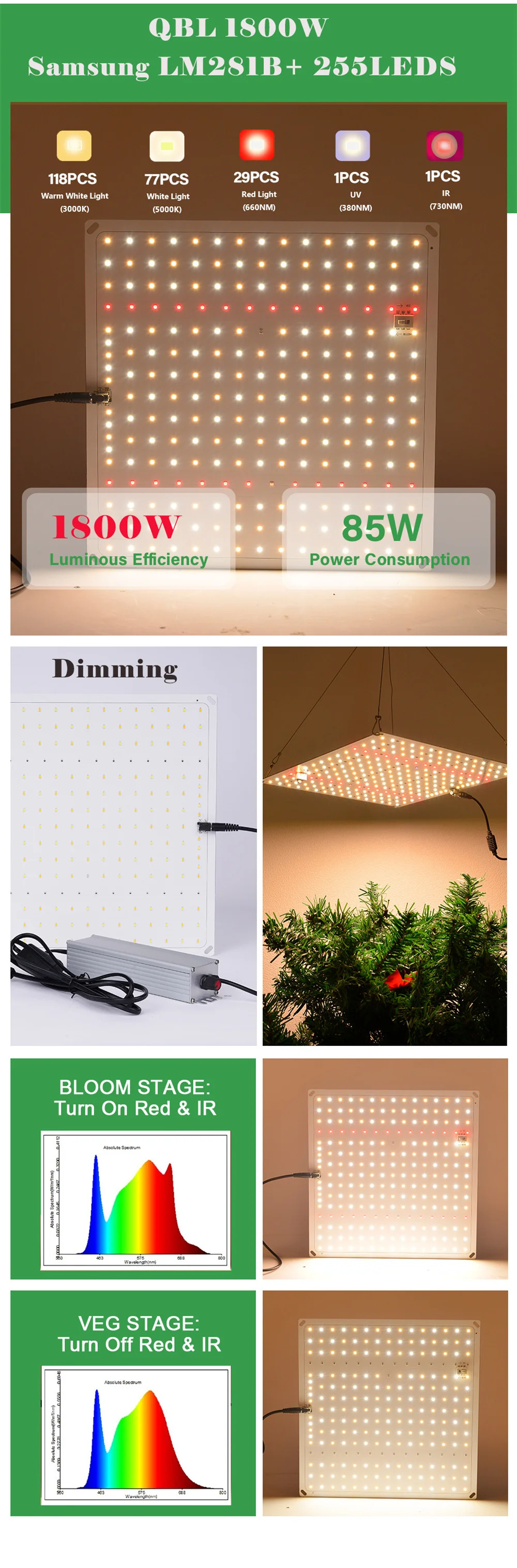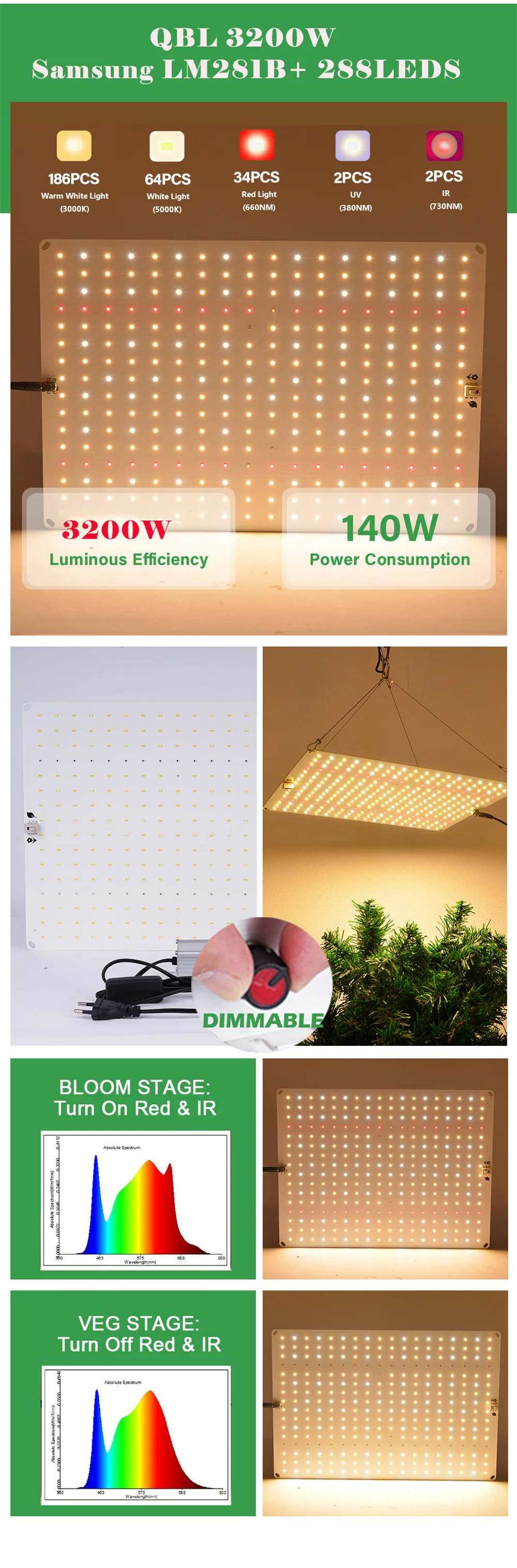 Фитолампа Samsung LM281B, 1000 Вт, светодиодная плата полного спектра для выращивания растений, ИКУФ, для выращивания овощей, цветов