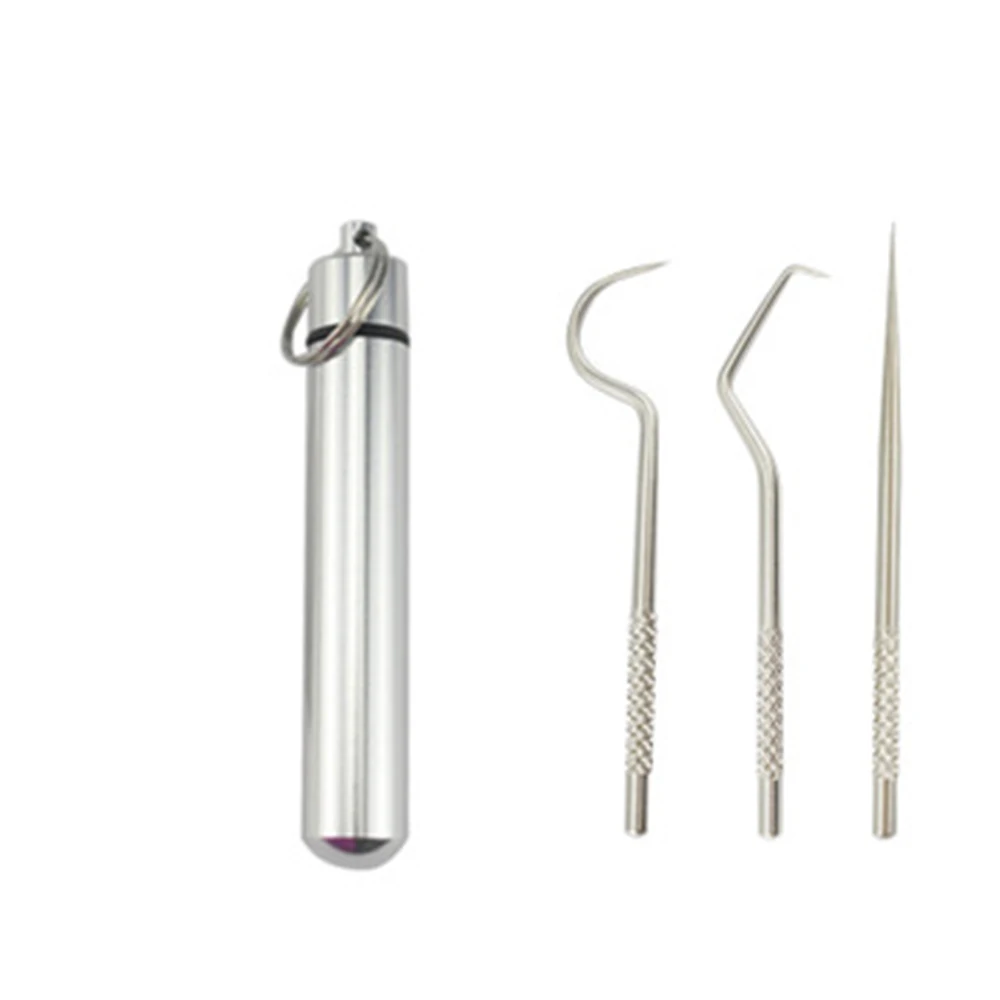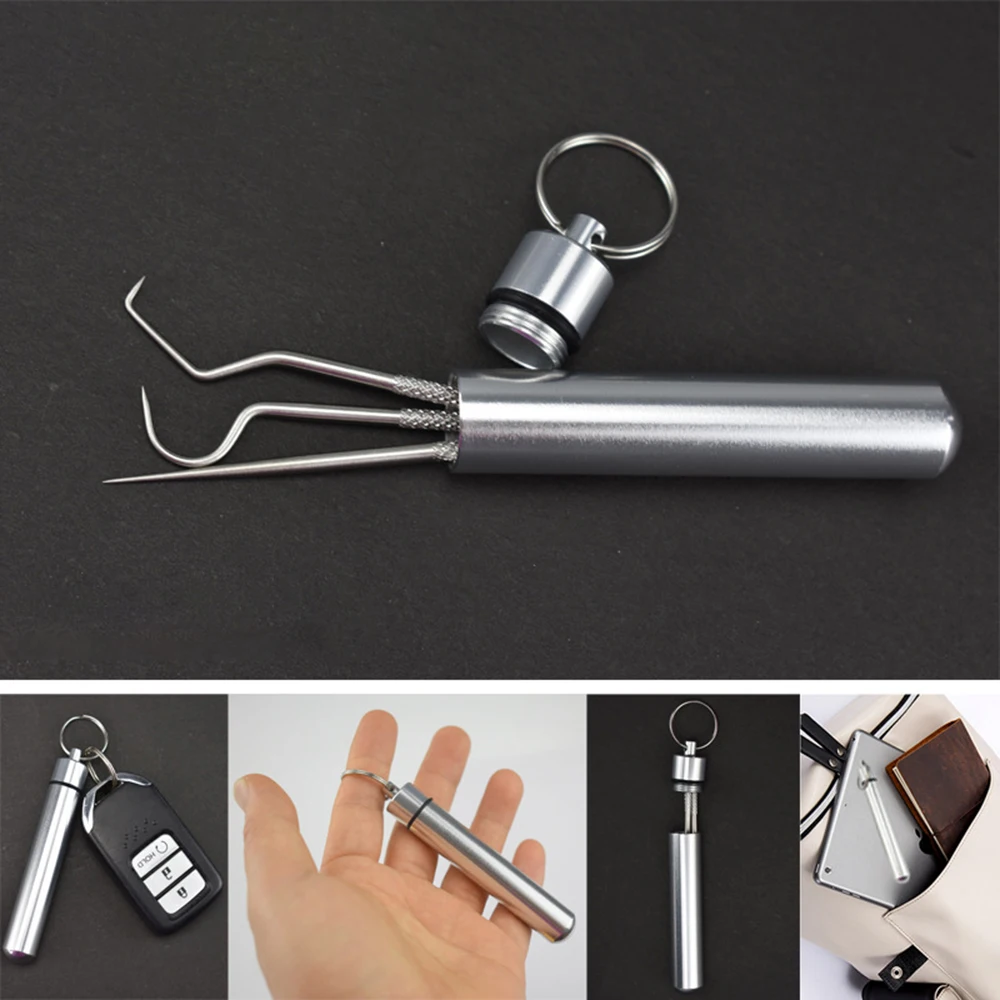 Зубочистка из нержавеющей стали, алюминиевый металлический держатель для зубочисток, декоративный портативный уличный диспенсер с многоразовыми пищевыми медиаторами для фруктов