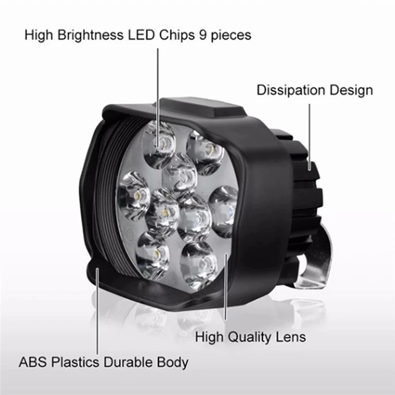 Фасветильник для мотоцикла и электровелосипеда, сверхяркая белая Рабочая фара с внутренним приводом, 9 светодиодов, 6 Вт, 12 В постоянного тока