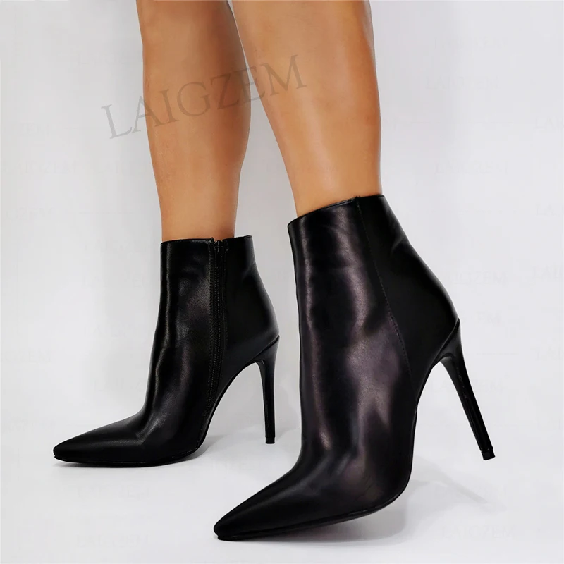 SEIIHEM/женские ботильоны черные сапоги на высоком тонком каблуке с боковой молнией и острым носком вечерние модельные женские туфли большие размеры 41, 43, 44, 47