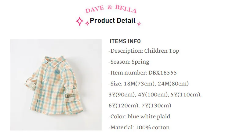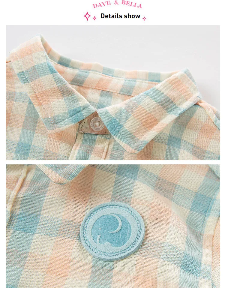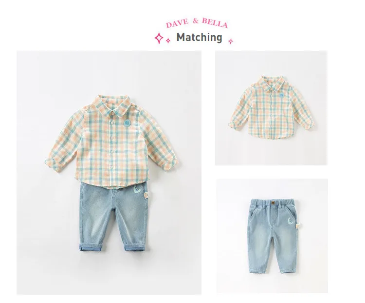 DBX16555 нижнее белье в стиле бренда dave bellaВесенняя модная одежда для маленьких мальчиков рубашки в клетку для детей ясельного возраста, топы детская одежда высокого качества