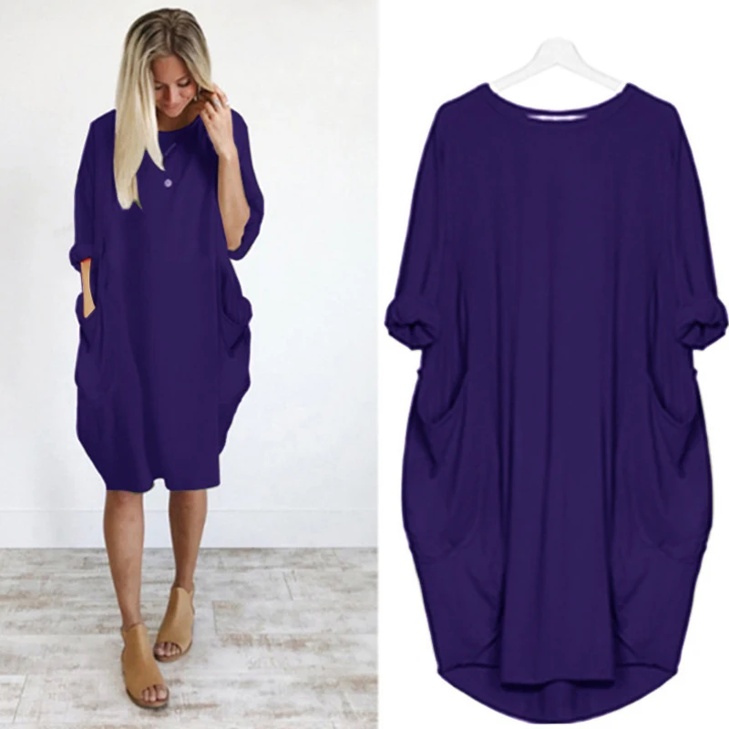 Женское повседневное свободное платье с карманами, модные однотонные длинные топы с круглым вырезом, женские платья-футболки, уличная одежда больших размеров 5XL