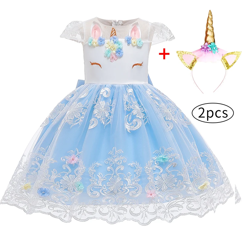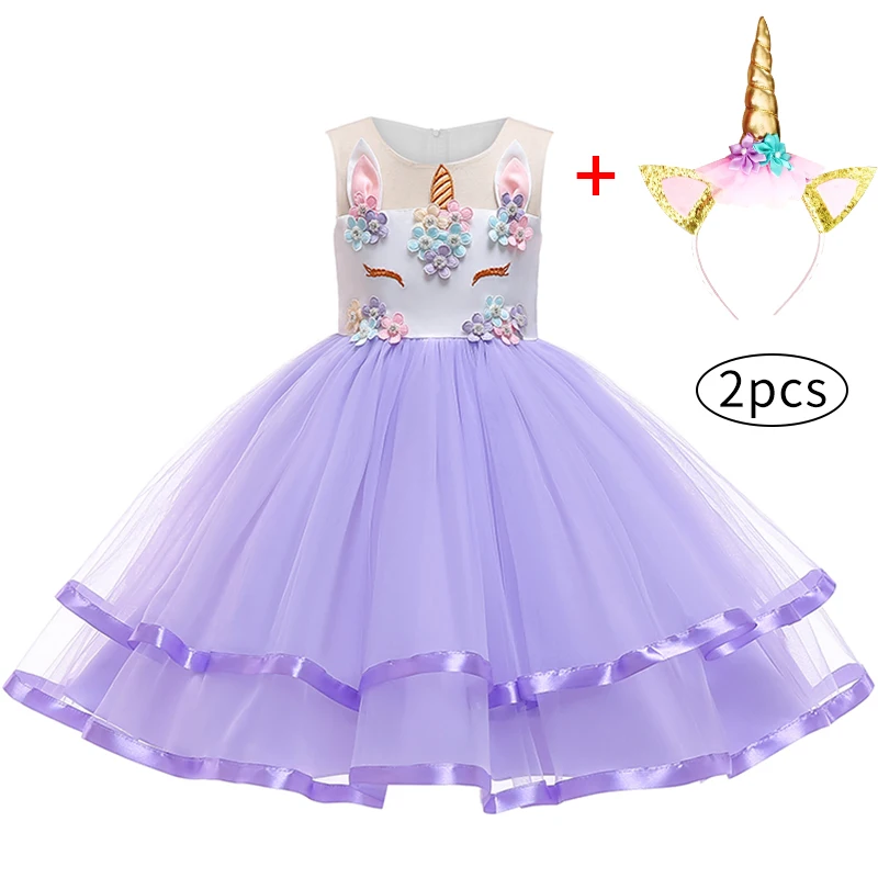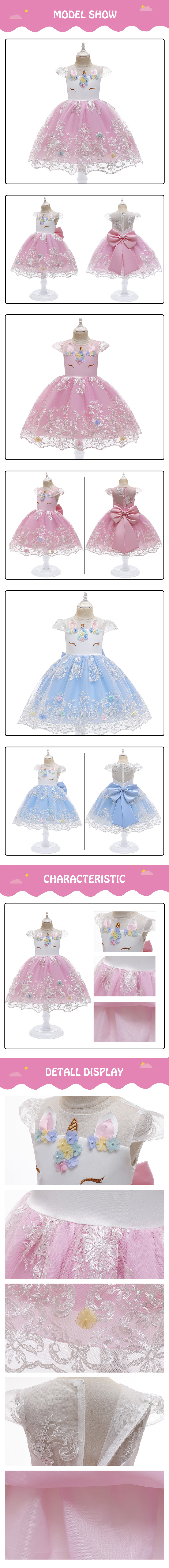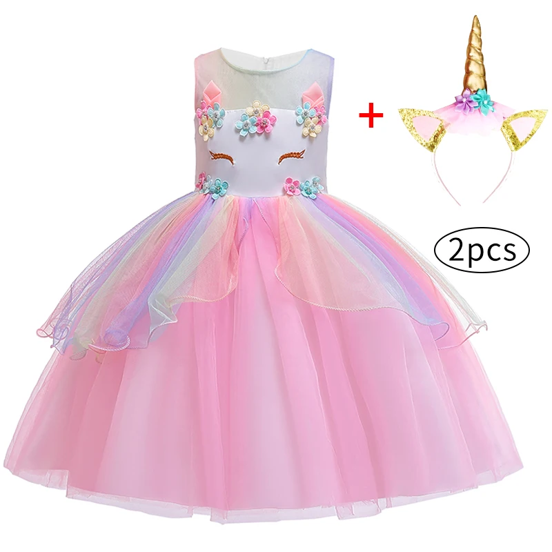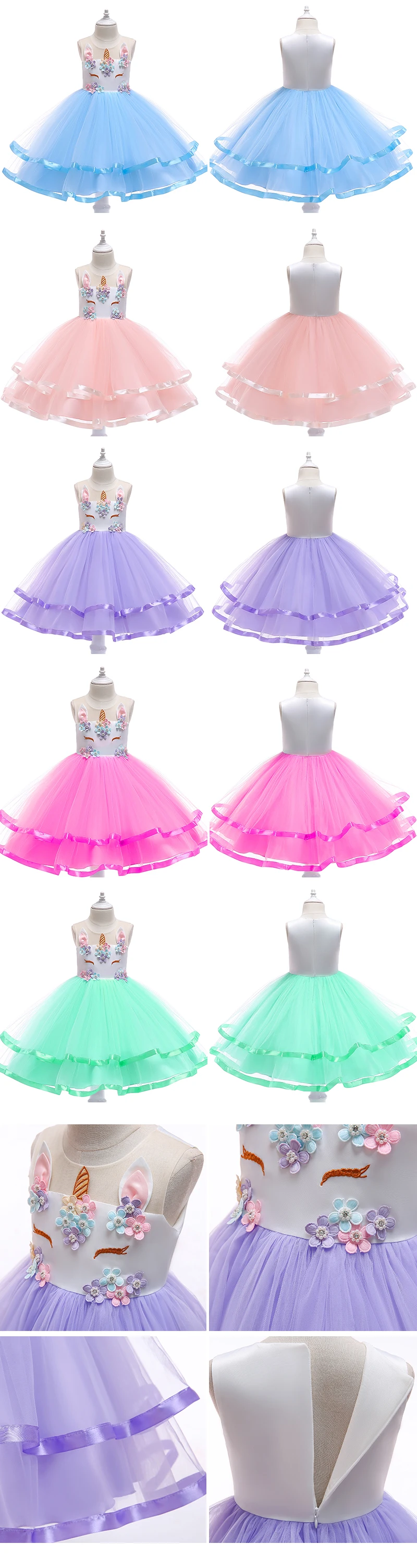 Платье для девочек 4, 6, 8, 10 лет, летняя одежда с единорогом для девочек, детвечерние костюм принцессы на день рождения, детское розовое платье с цветами