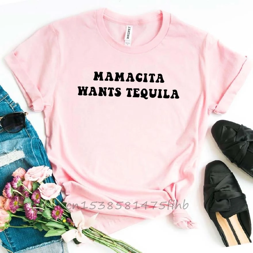Женская футболка Mamacita с рисунком захочет текилу, не выцветает, Премиум Футболка для женщин и девушек, женские футболки, топ с графическим рисунком, футболка на заказ