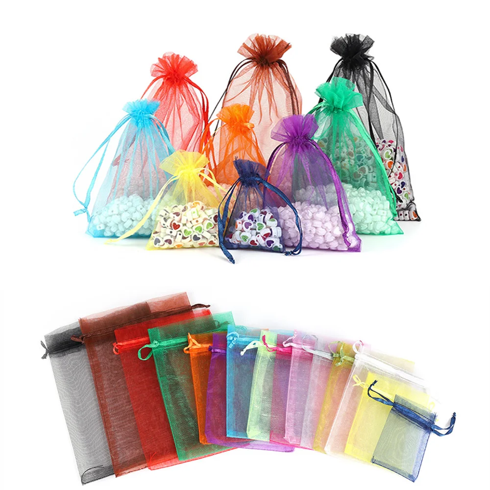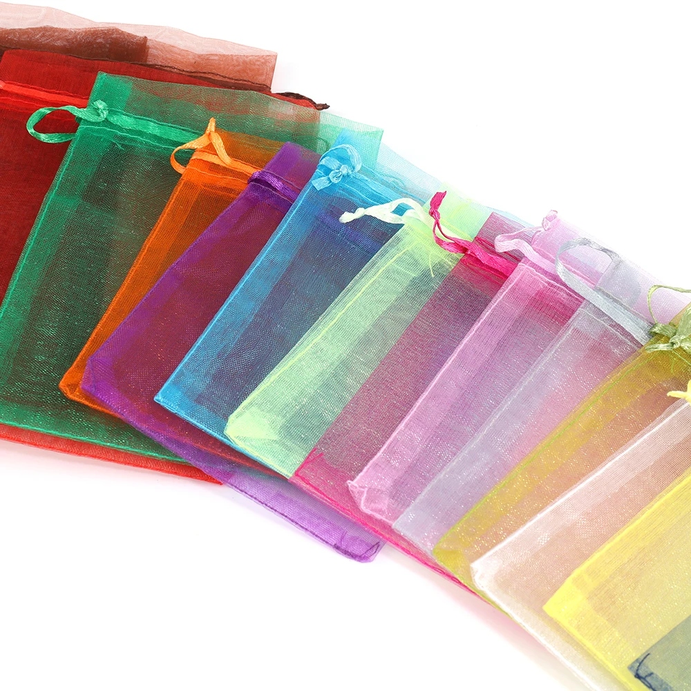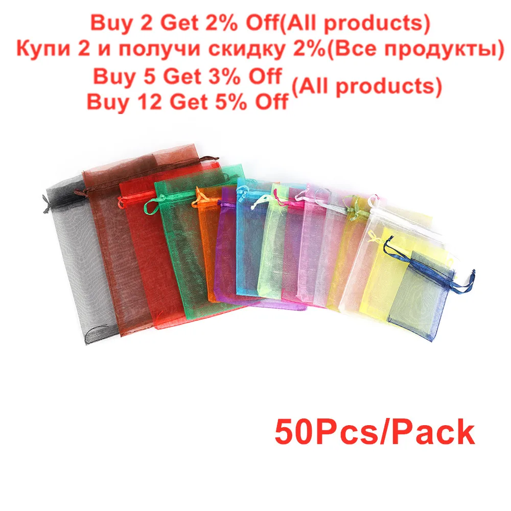 50 шт.лот 5x7 7x9 9x12 10x15 см органза сумки ювелирных изделий мешки для упаковки Свадебные вечерние украшения холст мешки подарка