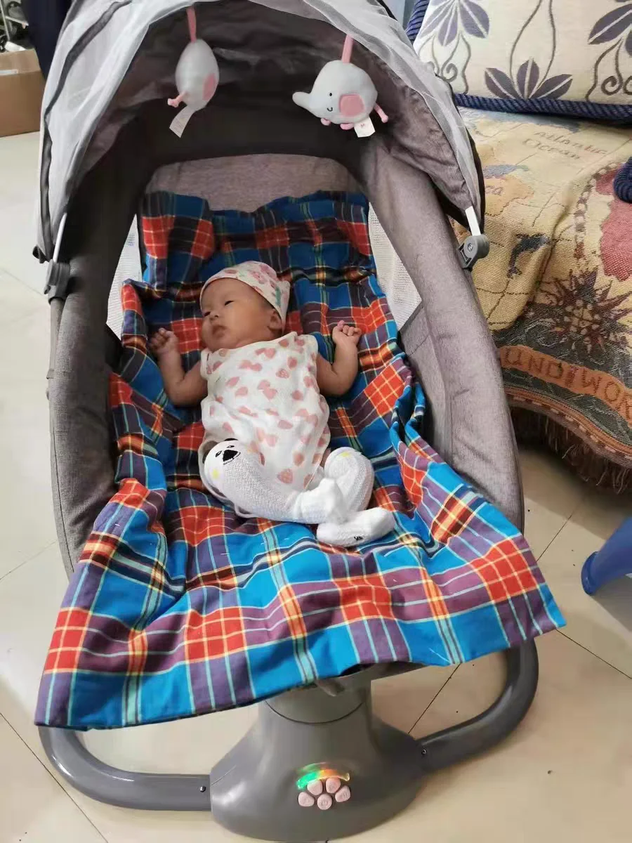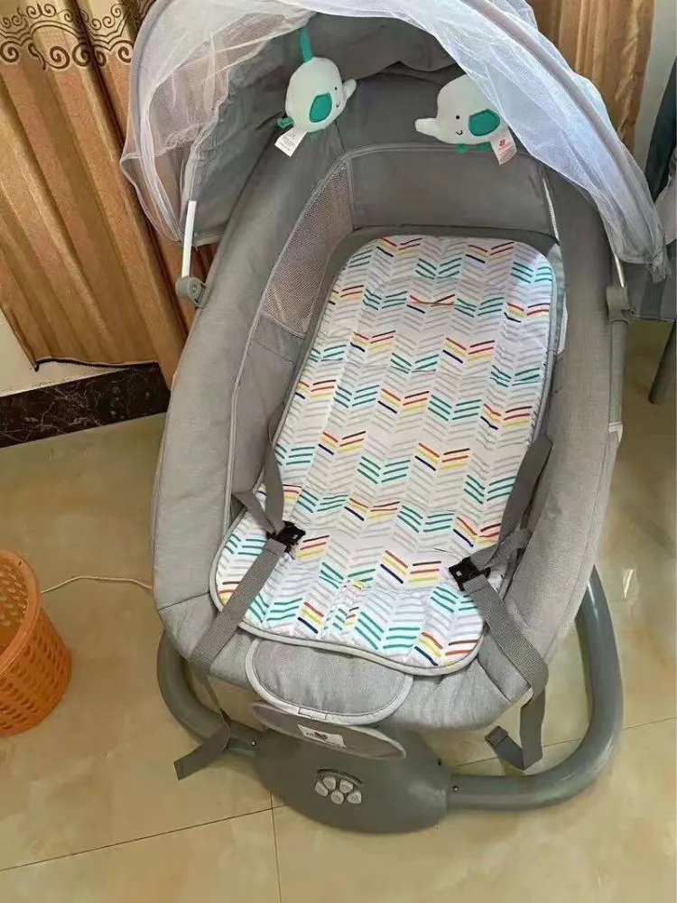 The baby electric rocking chair is received very quickly. It will not take up space when placed at home. It is easy to install and easy to use. My baby sleeps in the rocking chair and can play by himself. After starting, the button will swing by itself, and there will be music. As a mother, I can finally release my hands. Praise!