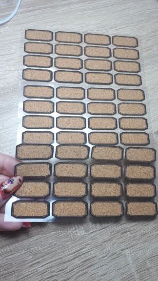 Быстрая и удобная доставка. Наклейки такие, как в описании. Размер наклеек - 14х30 мм. В комплекте 3 листа по 16 штук на каждом, всего 48 наклеек. Наклейки действительно сделаны из пробки, обратная сторона как у пластырей. Клей нанесён не на всю поверхность, по краям клея нет, но несмотря на это, наклейки держатся хорошо и + не прилипают к пальцам. Я доволен и рекомендую этот товар. Теперь мой Канбан идеален. Продавцу спасибо