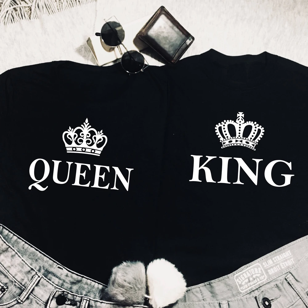 Футболка унисекс с надписью на День святого Валентина, топ, смешная футболка с надписью ее король, его королева, черная, подходит для пар