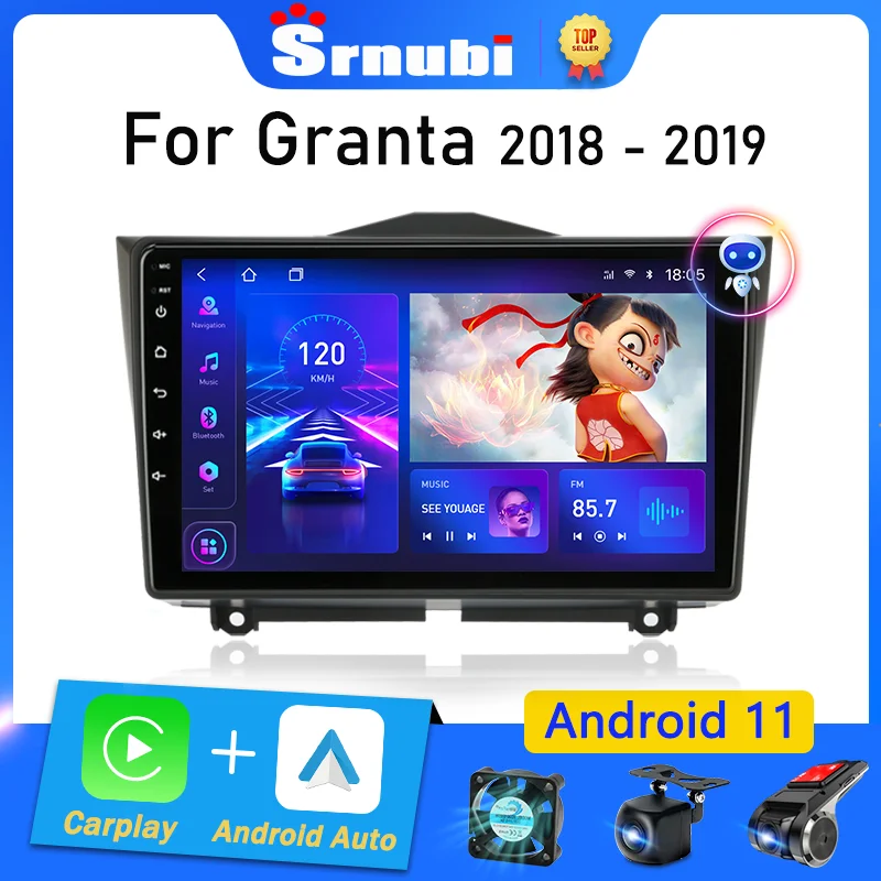 Автомагнитола Srnubi, 2 Din, Android 11, для LADA BA3 Granta Cross 2018 2019, GPS-навигация, Carplay, мультимедийный видеоплеер, стерео, DVD