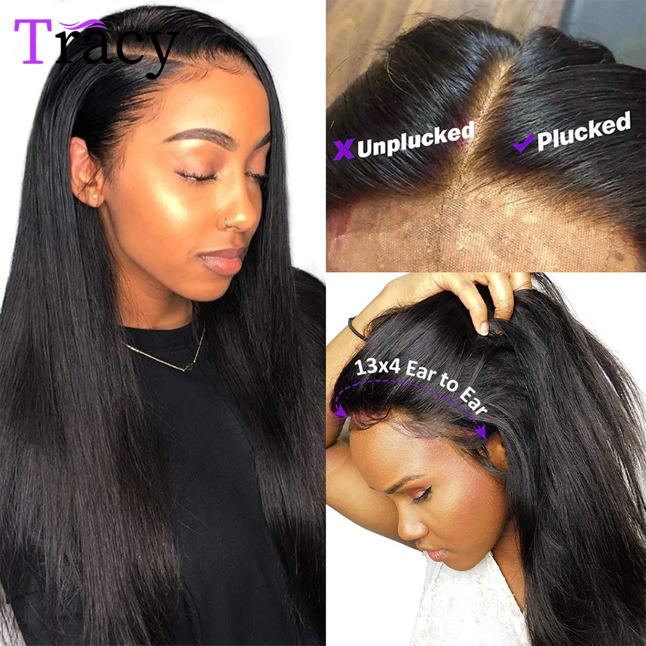 Парики на сетке 4X4 для женщин, парики из малайзийских прямых человеческих волос на сетке спереди, предварительно выщипанные 13X4 HD, прозрачные передние парики на сетке