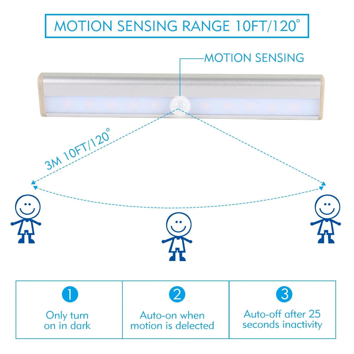 Беспроводной светодиодная подсветка под шкаф движения PIR Сенсор св...