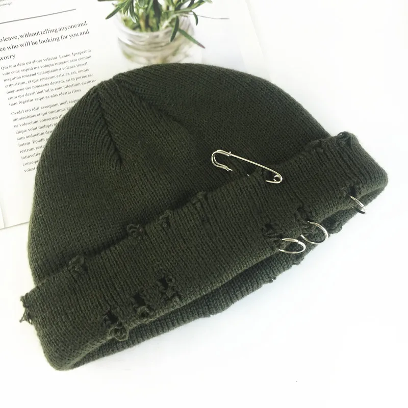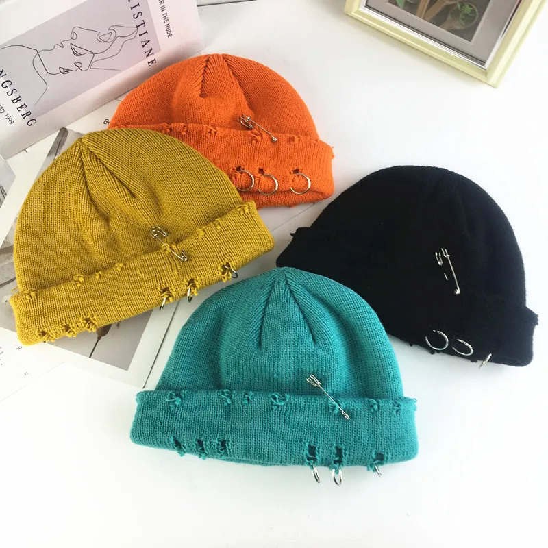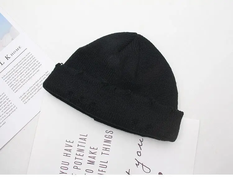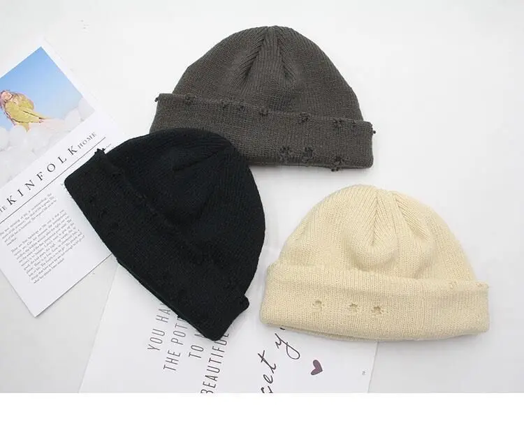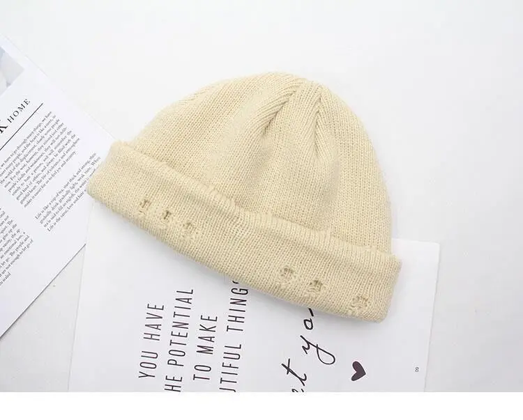 Зимняя шапка, женская вязаная шапка в стиле Харадзюку, модная теплая шапка, осенняя хип-хоп шапка с дырками, унисекс, базовая шапка PJ109