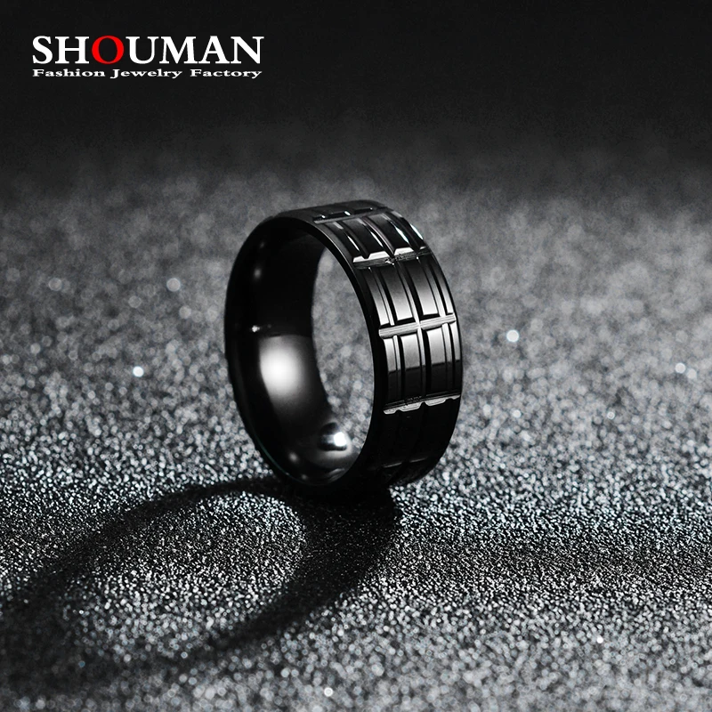 SHOUMAN простые парные кольца из нержавеющей стали с черной линией ...