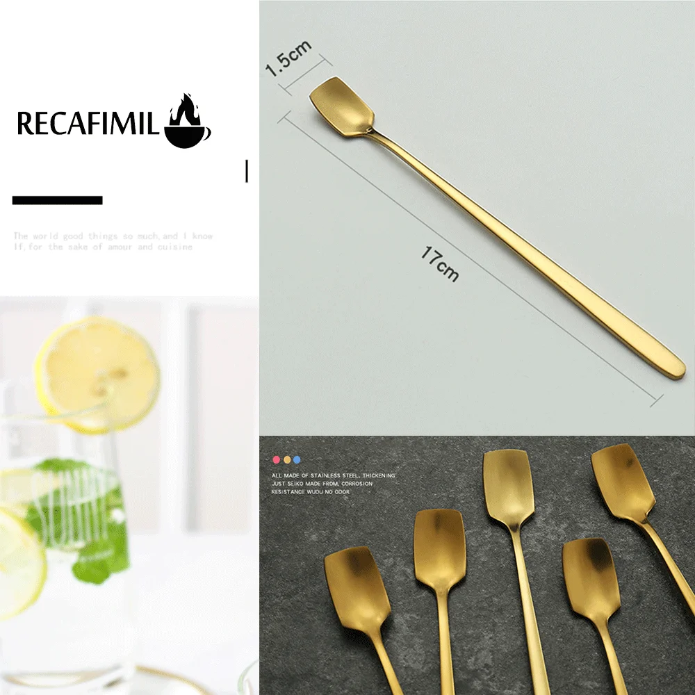 Подарочная кофейная ложка Recafimil, чайные ложки из нержавеющей стали с длинной ручкой, кухонные столовые приборы для горячего питья, Прямая поставка
