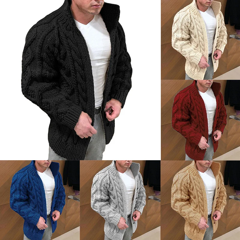 Свитер-пальто для мужчин, лидер продаж 2021, модный простой теплый плотный вязаный мужской свитер, универсальный кардиган, пальто на осень и зиму