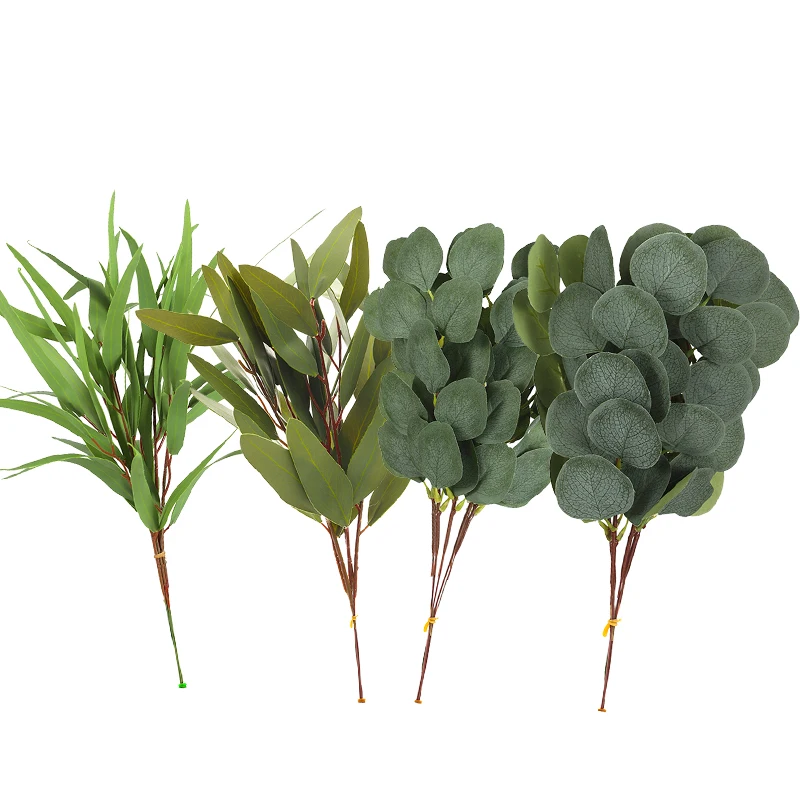 Искусственные листья эвкалипта, искусственные ветви эвкалипто, зеленые растения, свадебные украшения, Цветочные букеты для рабочего стола