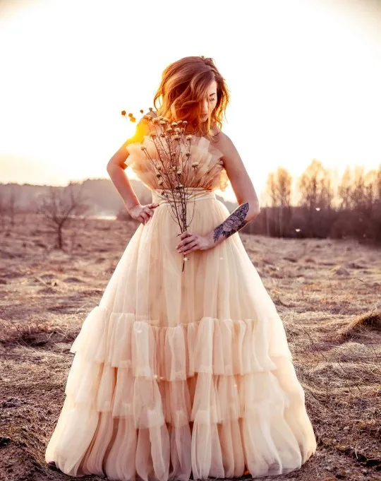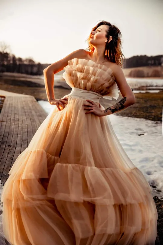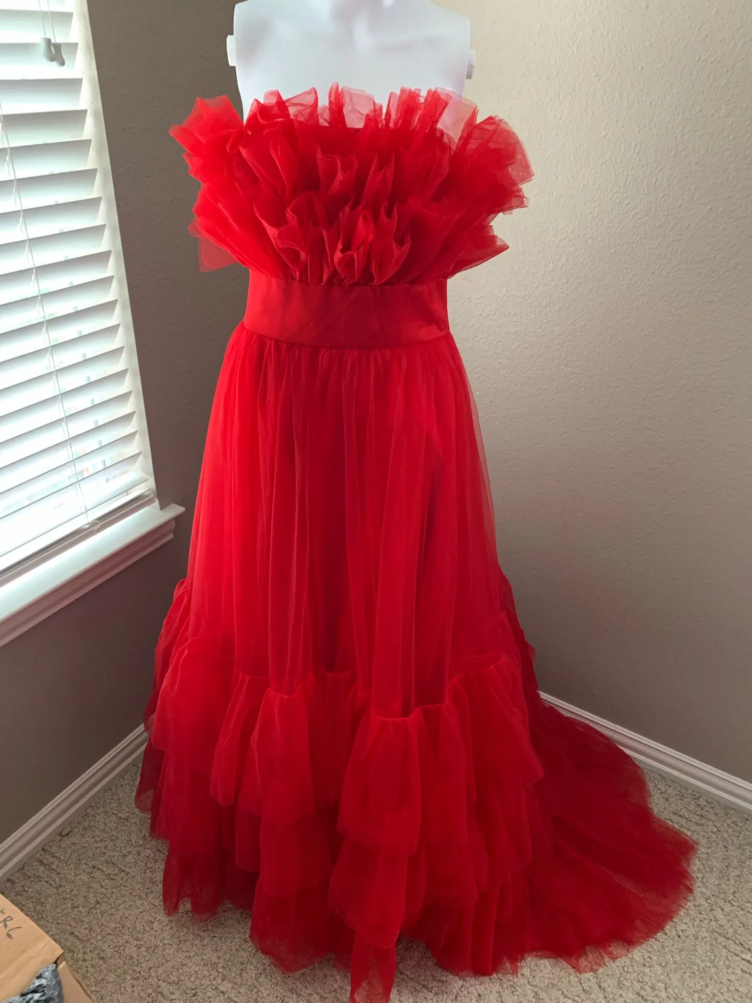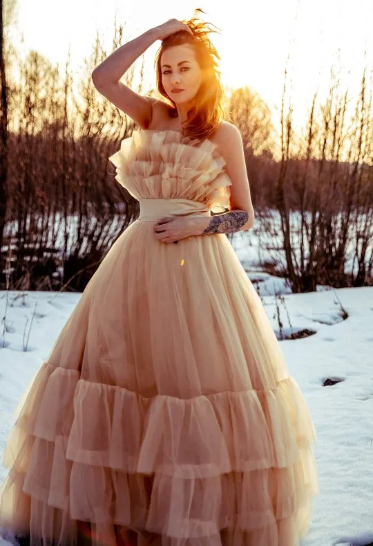 Вечерние платья Sevintage, тюлевые платья оранжевого цвета, с оборками, для выпускного вечера, без бретелек, Многоярусное, трапециевидные, для особых случаев, размера плюс