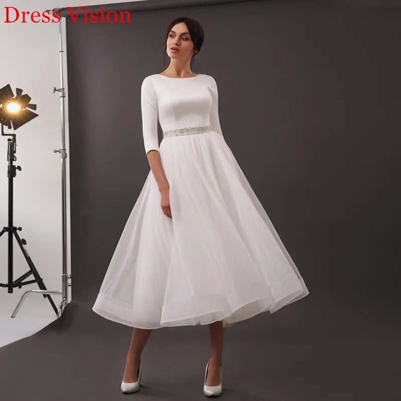 Женское атласное Короткое свадебное платье, элегантное атласное платье-трапеция до середины икры, с круглым вырезом, платье для невесты
