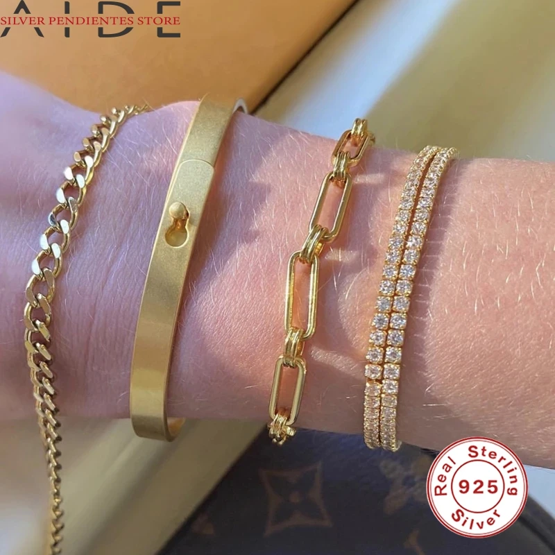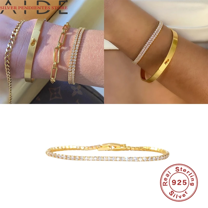 AIDE 925 серебряный бриллиантовый браслет для женщин 2,0 роскошный Теннисный браслет с бриллиантами Joyero модные золотые ювелирные изделия оптом