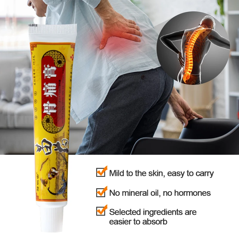 Название продукта:Анальгетическая мазьВес нетто:20 г/шт.Срок годности:24 месяцаХранение:Герметичный, защищенный от светильник, хранящийся в прохладном и сухом месте.Основные ингредиенты:Крокус сативус Л., buthus Martensii Karsch,Zaocys Dhumnades,Angelicae Pubescentis Radix,Clematis Chinensis Osbeck,Rhizome Corydalis, трава Staghorn Clubmoss,Trberculate Speranskia, inskia гималайская чайная корень, Eucommia ulmoides Оливер, Reynoutria japonica Houtt,Ligusticum Chuanxiong горт, Argy Wormwood лист, сушеный имбирь, Leonurus Japonicus Houtt,Suberect spathololos, milrstem хлоргексидин ацетат, вода и т. Д.Сфера применения:Подходит для адъювантного лечения дискомфорта шейки матки, дискомфорта плеч, поясничного дискомфорта, суставов ног и травм мягких тканей.Использование:Промойте пораженный участок теплой водой, затем равномерно нанесите соответствующее количество этого продукта на пораженную часть и аккуратно разминайте на минуту, чтобы полностью впитать его, 2-3 раза в день.Меры предосторожности:1. Внешние принадлежности, не Впустите их в рот и глаза.2. Используйте с осторожностью для аллергии на кожу и беременных.3. Поместите продукт в место, где дети не легко связаться.4. Этот продукт не является заменителем лекарственных средств.